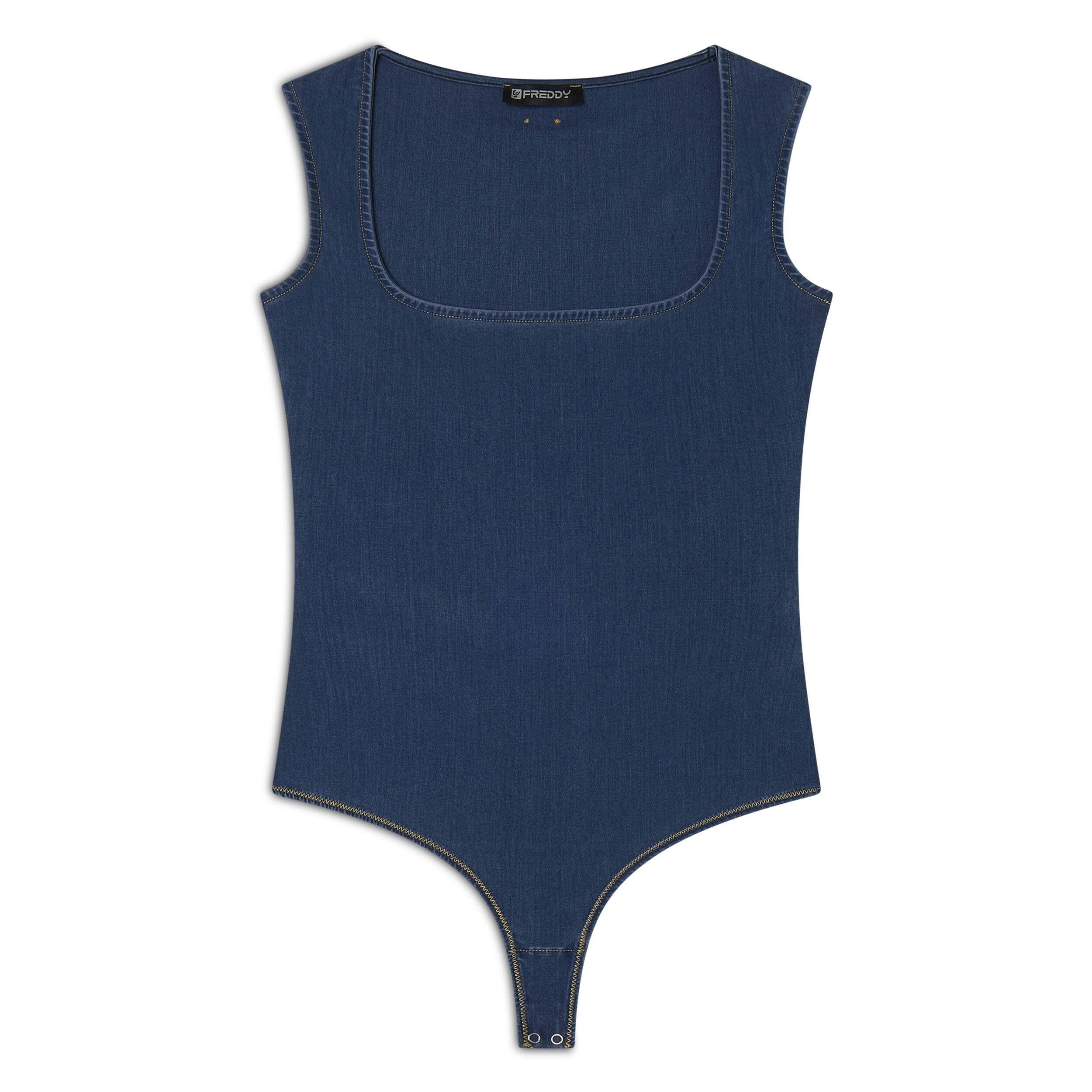 Ce body slim est fabriqué en jersey TENCEL Lyocell, une fibre écologique et biodégradable qui est douce sur la peau et a un effet denim caractéristique. Le style brésilien, la large encolure carrée et la conception sans manches mettent en valeur les lignes du corps. Le petit camée émaillé avec logo appliqué au dos ajoute une touche exclusive. Fermeture avec des boutons-pression pour plus de commodité.