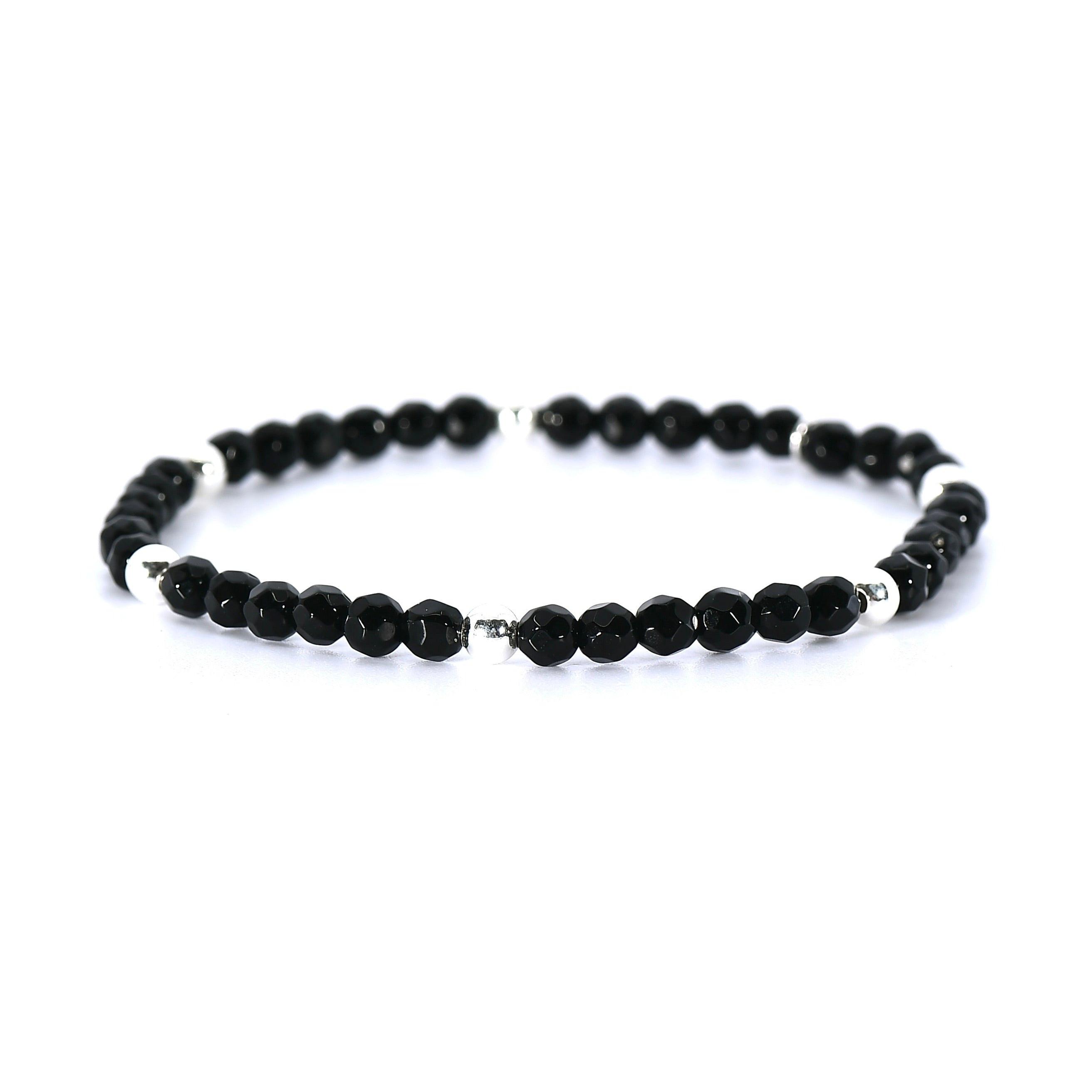Ce ravissant bracelet extensible pour femme associe des pierres d'onyx facettées de 4 mm à l'élégance de l'argent sterling 925. L'onyx d'un noir profond dégage force et élégance, tandis que l'argent sterling confère au bracelet une sophistication discrète.