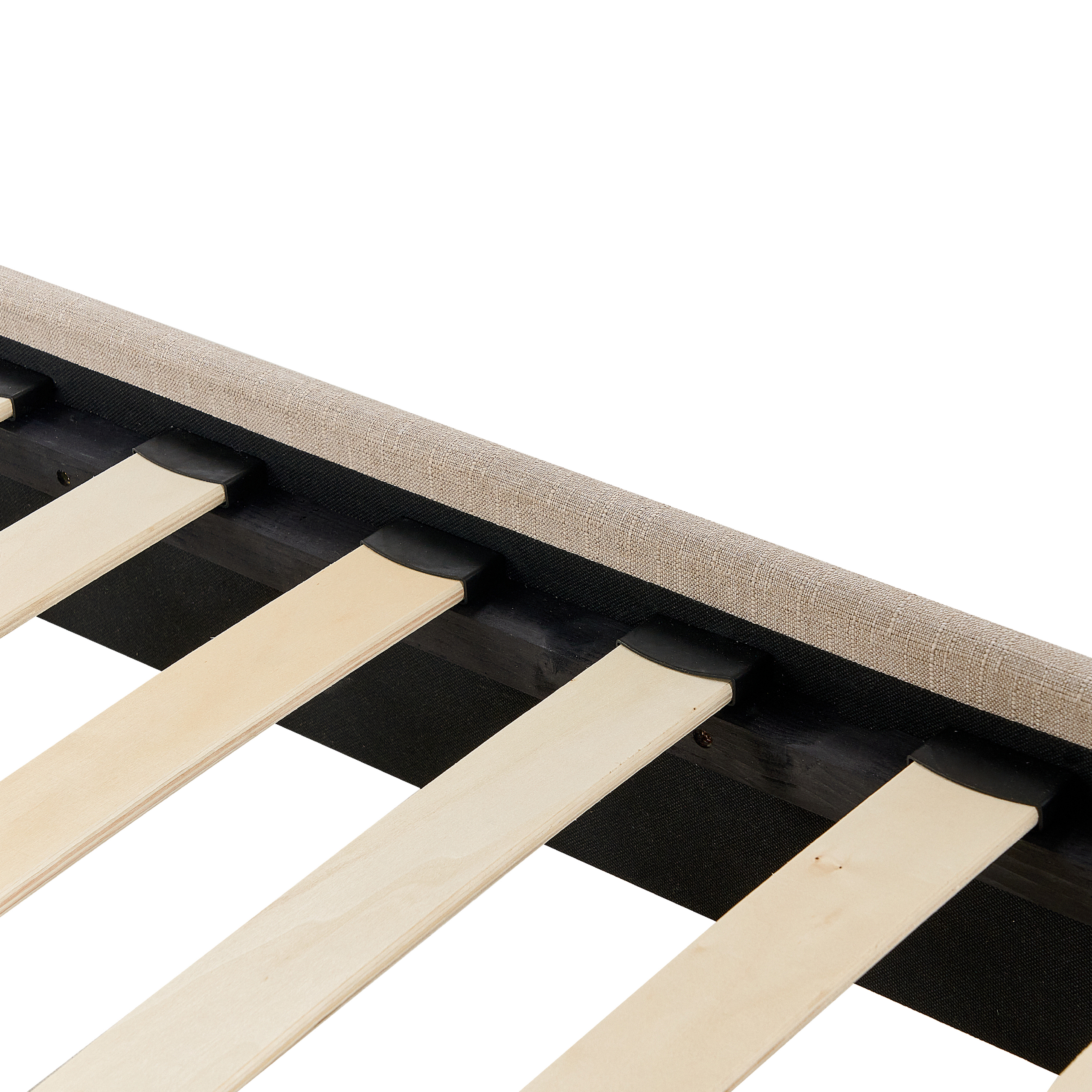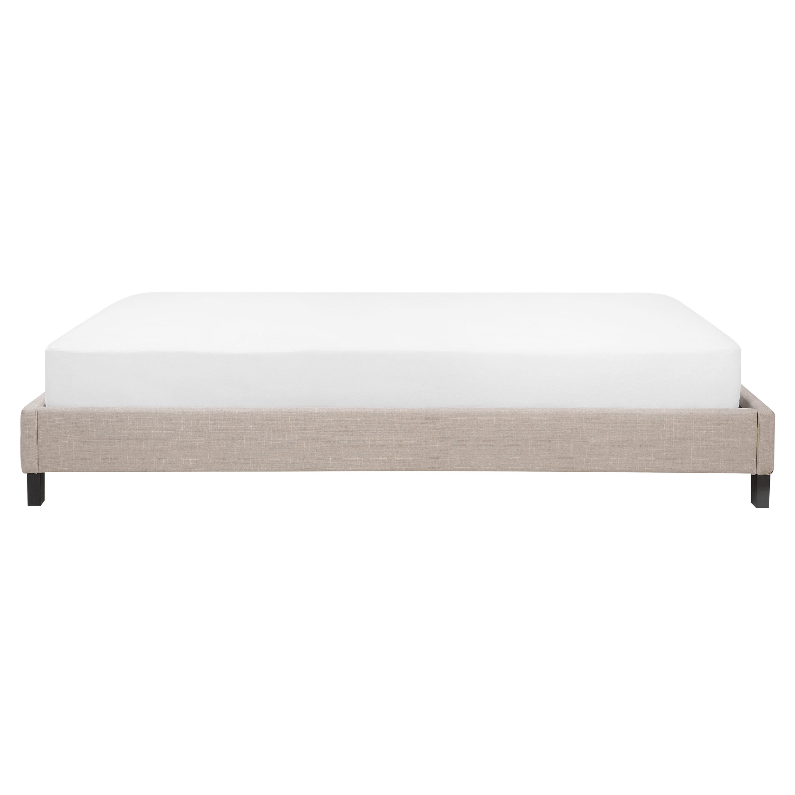 Lit deux places. Profitez d'une nuit de sommeil paisible avec ce cadre de lit minimaliste. Son design moderne et universel s'intègre à n'importe quel décor intérieur. Tapissé en polyester aspect lin de haute qualité, le cadre est doté de lattes en bois assurant une répartition uniforme du poids du corps. Sans tête de lit, ce lit est idéal pour les chambres aux plafonds bas et inclinés.