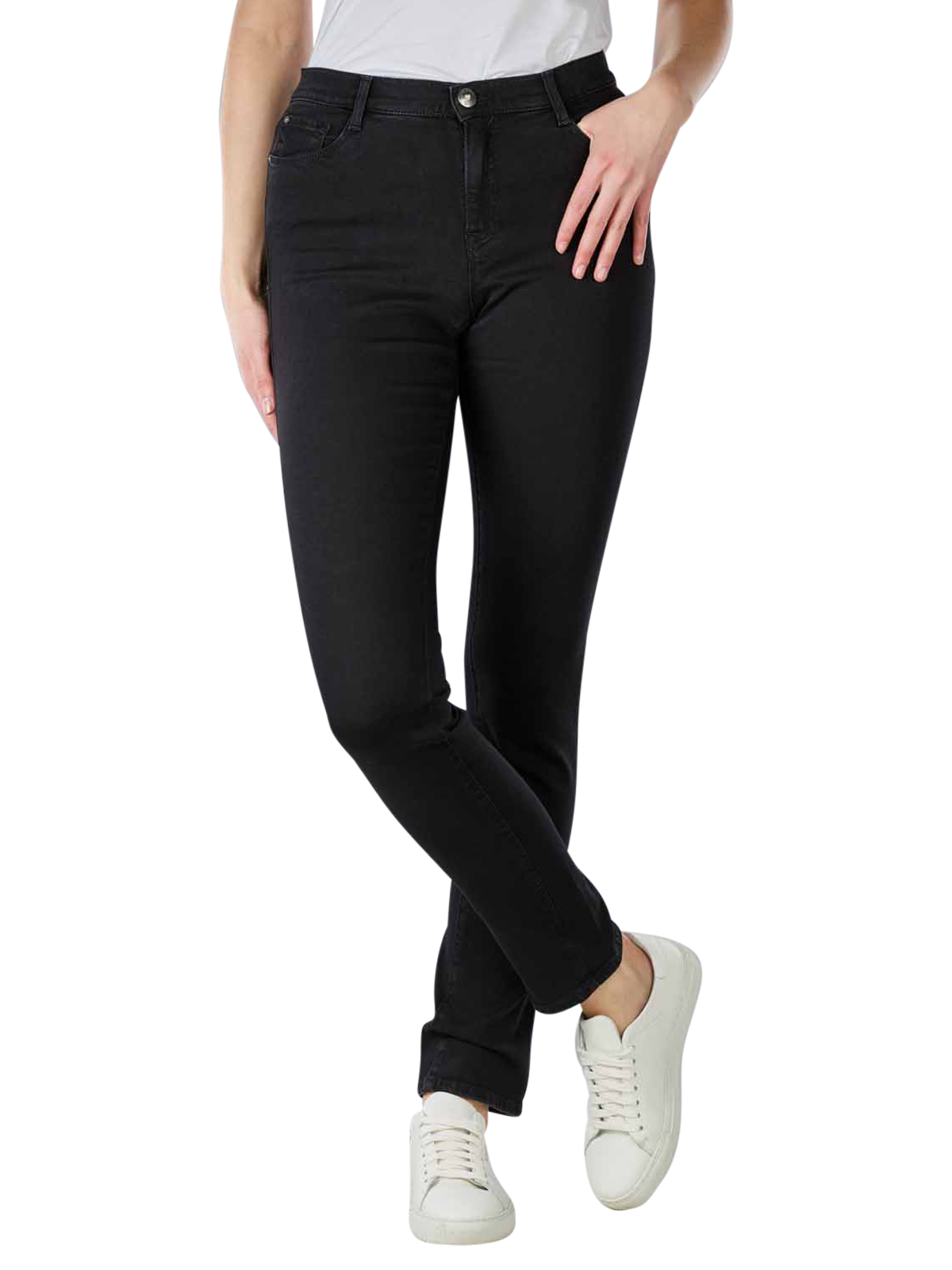 Le jean Mary Slim Fit offre une silhouette moderne et flatteuse. Conçu pour le confort et le style, ce jean est un ajout polyvalent à toute garde-robe, adapté à diverses occasions. La coupe droite le rend particulièrement élégant et il peut être porté parfaitement avec des talons hauts, ce qui le rend également adapté au travail. En petit contraste, le jean présente de fines surpiqûres décoratives de couleur gris clair sur les poches arrière, et une touche de couleur rouge orne la poche arrière droite.