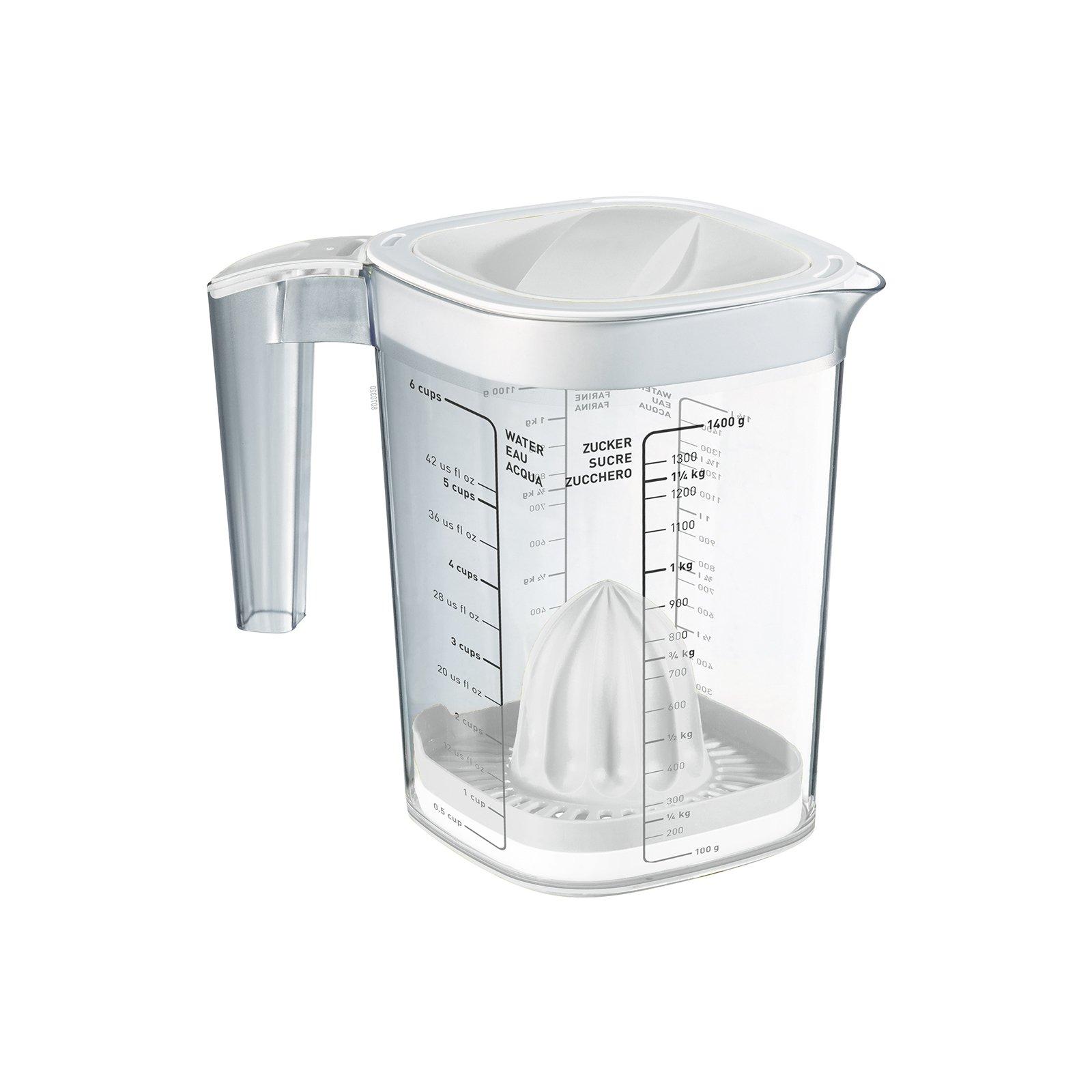 Type de produit : Gobelet gradué, Type de matériau : Plastique, Matériau : Polystyrène (PS), Couleur du détail : Transparent, Blanc, Kit : Non, Unité demballage : 1 pièceLéchelle de mesure gravée contient non seulement des indications en litres, mais aussi des unités de mesure internationales.1 pièceGobelet gradué, 15 dl en couleur transparent/blancEn polystyrène (PS)Poignée ergonomiqueRésistant au lave-vaisselle