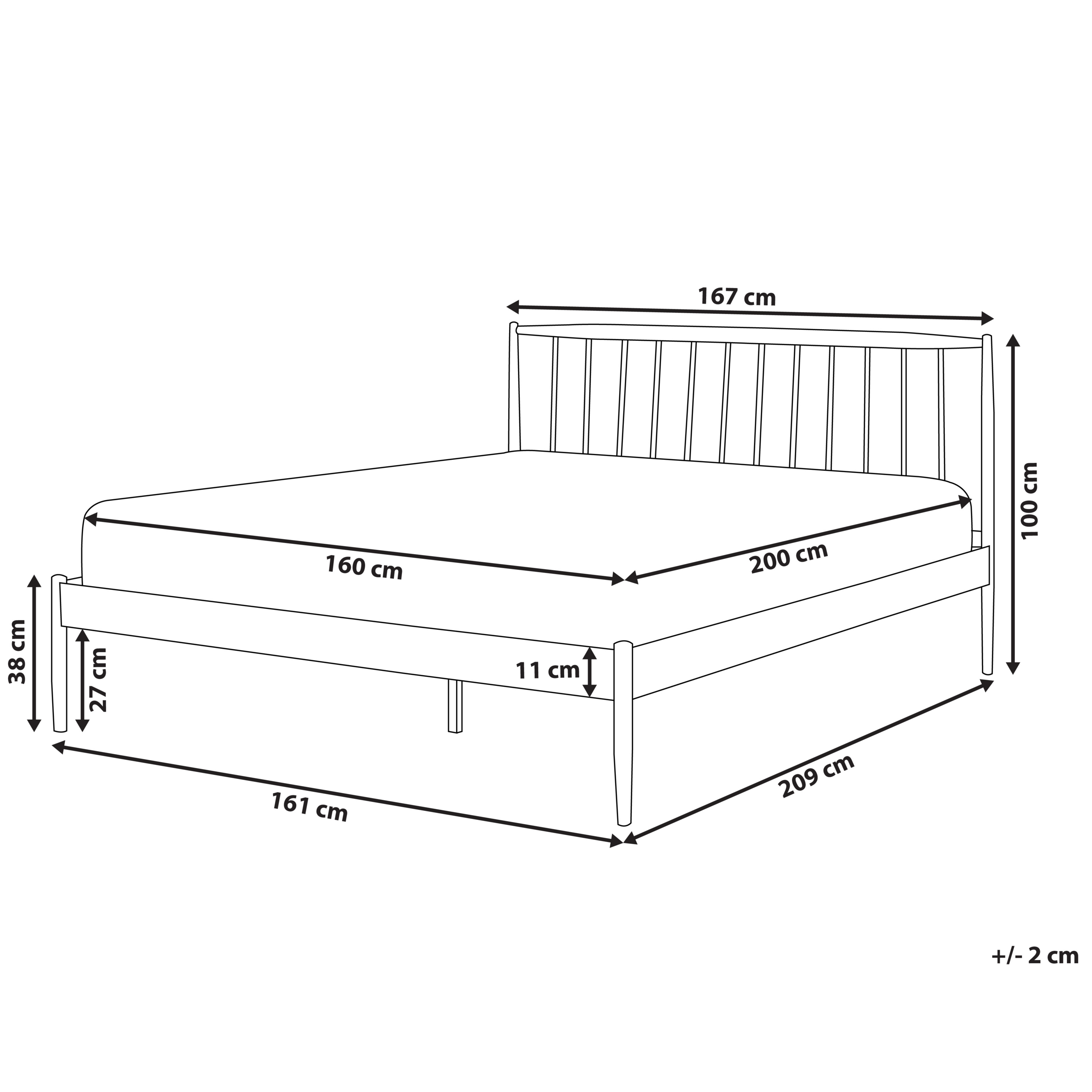 Dimensions de lappuie-tête:</b> 161x62<br> <b>Largeur:</b> 167 cm<br> <b>Longueur:</b> 209 cm<br> <b>Hauteur:</b> 100 cm<br> <b>Surface de couchage:</b> 160x200 cm<br> <b>Poids:</b> 25 kg<br> <b>Charge admise:</b> 250 kg<br> <br><b>Loffre inclue: 1 x Cadre de lit, 1 x Sommier (24 lattes articulées), Non inclus : matelas et parure de lit