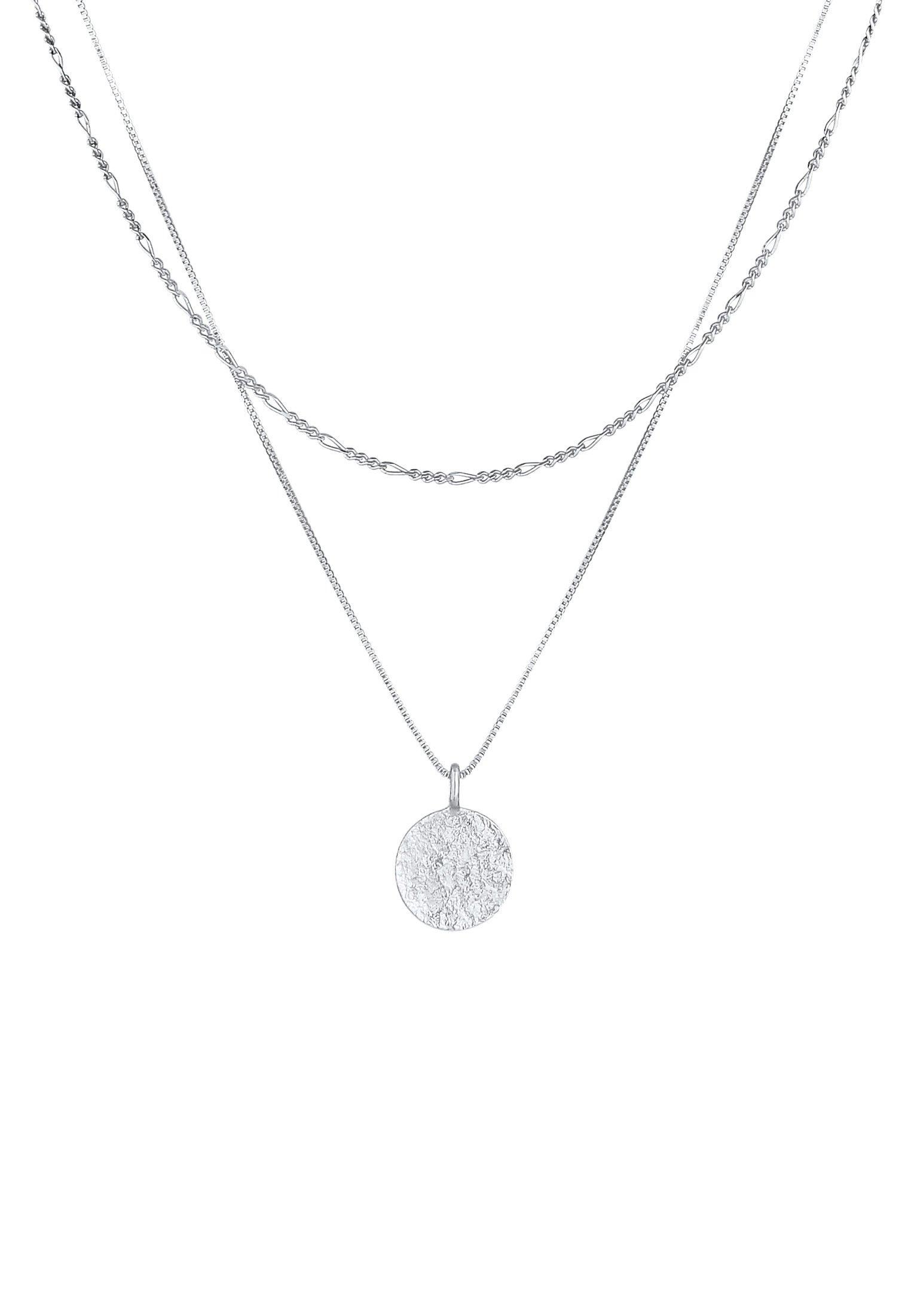 Diese trendige Herren Layer-Kette, aus massivem 925er Sterling Silber handgefertigt, setzt mit seinem runden Plättchen Anhänger den perfekten Style. Für einen klassischen Look sorgt die kurze 50 cm lange Kette im Figaro-Design. Modern dazu kombiniert sticht die 55 cm lange Venezianer-Kette im eleganten Stil und mit strukturiertem Anhänger hervor. Ein großartiges Accessoire, das jedem Männer Outfit eine dezente Eleganz verleiht.