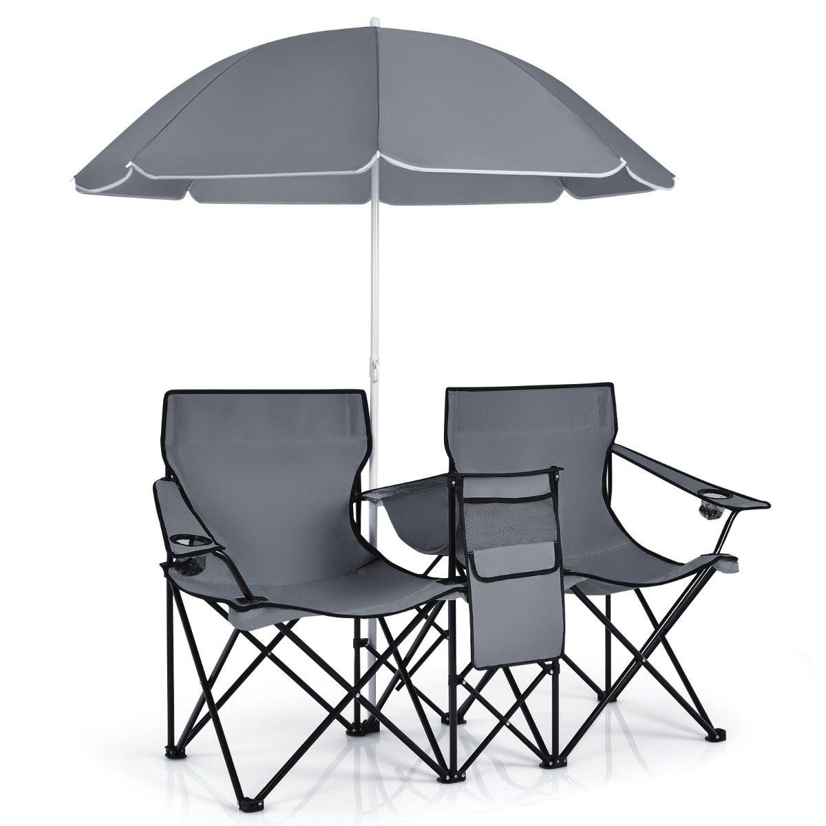 Northix, Chaise de camping avec parasol double chaise pliante avec porte-gobelet sac isotherme gris