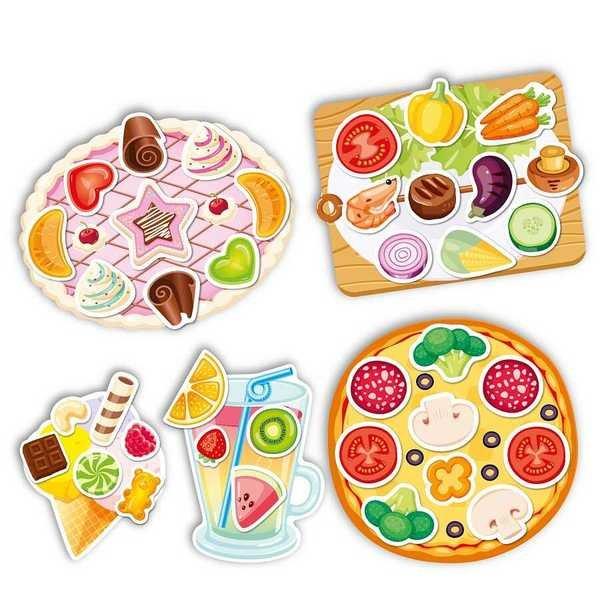 Jeu éducatif pour enfants, cartes en plastique avec velcro - Cuisine. Jeu éducatif pour enfants de 12 mois et plus 5 cartes fines en plastique - pizza, glace, limonade, gâteau, salade, 16 pièces. Tu aimes la pizza ou la glace ? Aurais-tu envie d'ajouter une tomate à une limonade ? Apprenez-en plus ensemble sur les aliments, exercez ainsi le discours oral et la créativité, la motricité fine et la coordination œil-main. Des cartes en plastique parfaitement adaptées aux petites mains pour les saisir et les former. Vous n'avez pas à vous soucier que votre enfant mâche, casse ou plie ces cartes de haute qualité. Les jeunes enfants apprendront rapidement à reconnaître les différents animaux et objets représentés sur chaque carte. Les images sont simples et claires.