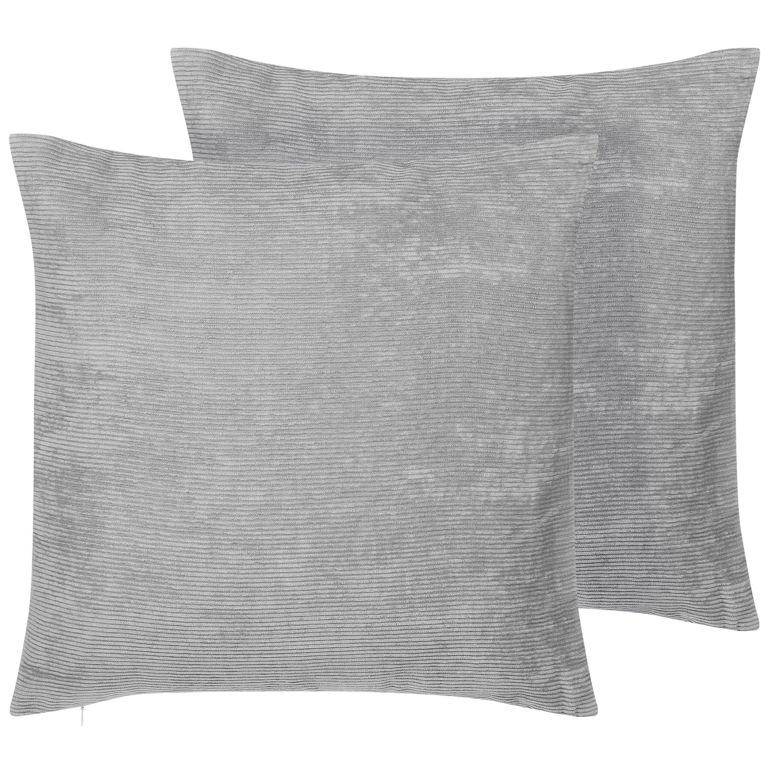 2 coussins décoratifs 45 x 45 cm avec taies texture velours côtelé gris. Ajoutez une touche moderne à votre intérieur ! Avec ces coussins décoratifs à la texture velours côtelé, votre espace détente sera davantage confortable. Les taies de ces jolis coussins déco sont déhoussables, donc si vous désirez changer d'ambiance, il vous suffira juste de retirer les housses et d'enfiler de nouvelles taies.