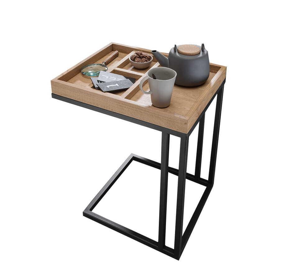 Table d'appoint "Mia" avec plateau de table en chêne sauvage huilé et piètement métallique noir revêtu par poudre.Plateau : chêne sauvage huilé, 20mmHauteur du plateau de table : 50mmPiétement : métal revêtu par poudre noir, 20x20mmDimensions (LxPxH) : 60x40x60 cm