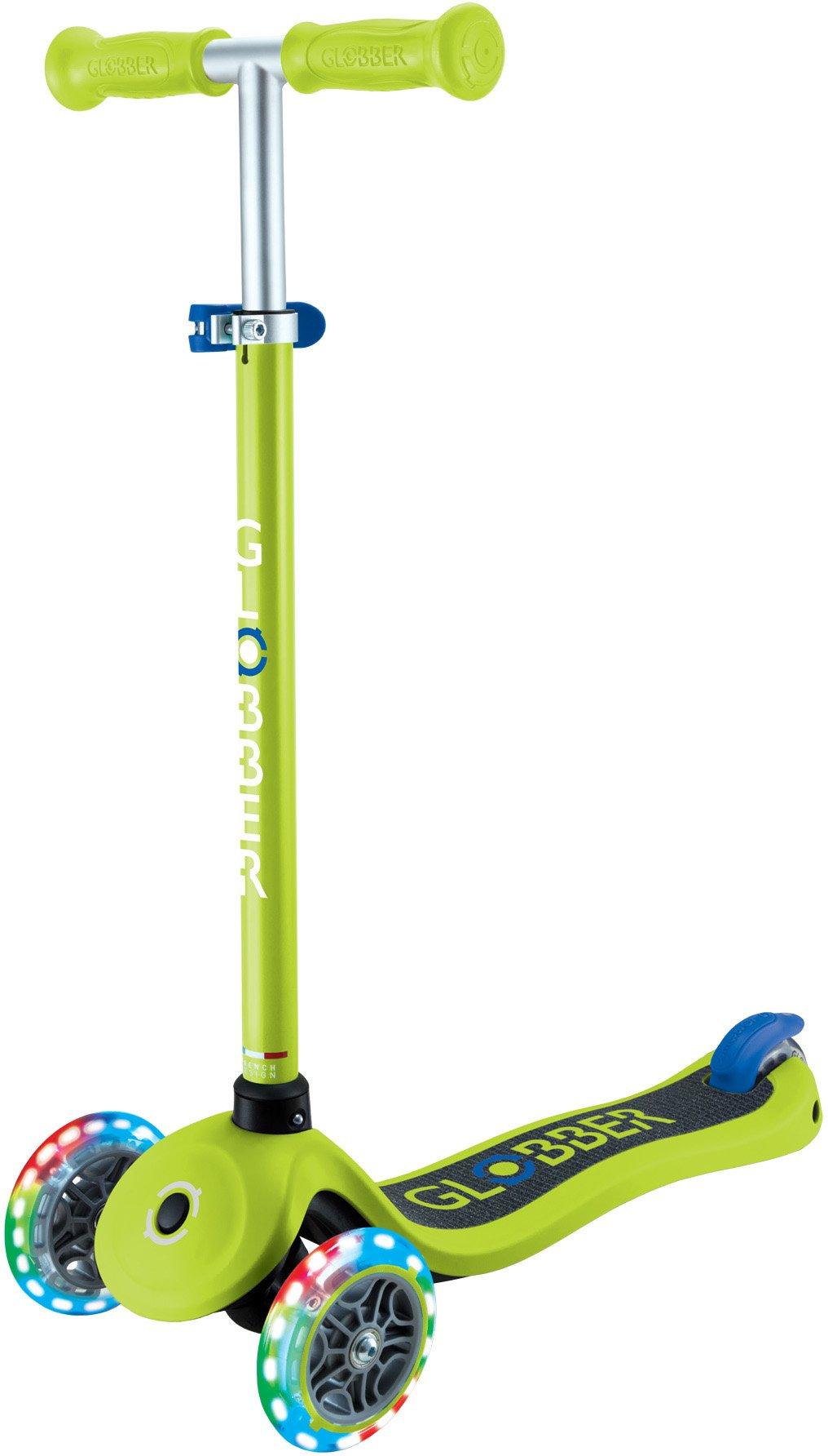 La version Primo Lights de Globber est la trottinette d'entrée de gamme idéale pour les jeunes enfants à partir de 3 ans. Fabriqué avec les meilleurs composants, il est adapté aux procédés de production les plus modernes. Ses caractéristiques adaptées aux enfants rendent la conduite de la trottinette particulièrement facile pour les enfants. Les 3 roues confèrent à la trottinette une grande stabilité et donnent à ton enfant un sentiment de sécurité. La Globber Primo est la trottinette d'entrée de gamme parfaite. Détails du produit Grâce à la position basse, il est facile pour ton enfant de contrôler et de diriger le Primo. Le guidon peut être réglé en hauteur sur trois niveaux afin d'adapter la trottinette de manière optimale à ton enfant. Un système de direction breveté, que seul Globber utilise sur sa trottinette, te permet de bloquer la direction au début en appuyant sur un bouton. Cela aide ton enfant à se sentir en sécurité sur la trottinette. Deux grandes roues LED de 120 mm à l'avant absorbent les irrégularités de la route. La fonction lumineuse des roues est un aspect de sécurité supplémentaire le soir dans la rue. Le plus important en bref : Marchepied profond Capacité de charge maximale de 50 kg Convient à partir de 3 ans Frein à pied Poids de 3 kg Pliable Guidon réglable en hauteur Roues lumineuses à l'avant La durabilité : La pollution globale de notre planète préoccupe depuis de nombreuses années déjà la population de notre planète. Ce sont surtout nos océans et les animaux qui y vivent qui en souffrent. Cela est notamment dû au fait que nous utilisons trop de "plastique à usage unique" dans notre vie quotidienne. Sur plus de 400 millions de tonnes de plastique produites chaque année, environ 9 millions de tonnes finissent dans nos océans. A lavenir, Globber souhaite s'engager davantage contre la consommation de plastique et utilise donc du plastique recyclé dans la production de ses produits. Globber est actuellement la première et la seule marque de trottinettes à utiliser du plastique recyclé pour la production de collections entières de trottinettes. Cette démarche ne concerne pas uniquement certains produits spécifiques, mais également la majorité de l'assortiment Globber.