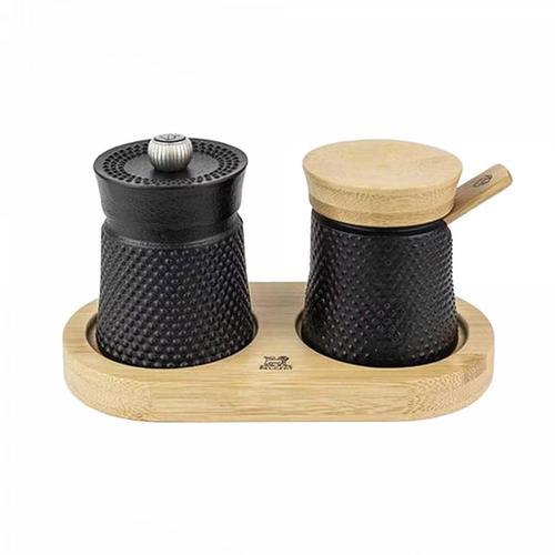 * Coffret Bali haut de gamme : moulin à poivre en fonte et pot à sel * Dégustez du sel et du poivre fraîchement moulus * Matériau : fonte, bois, métal * Mouture classique * Moulin manuel * Largeur : 8 cm