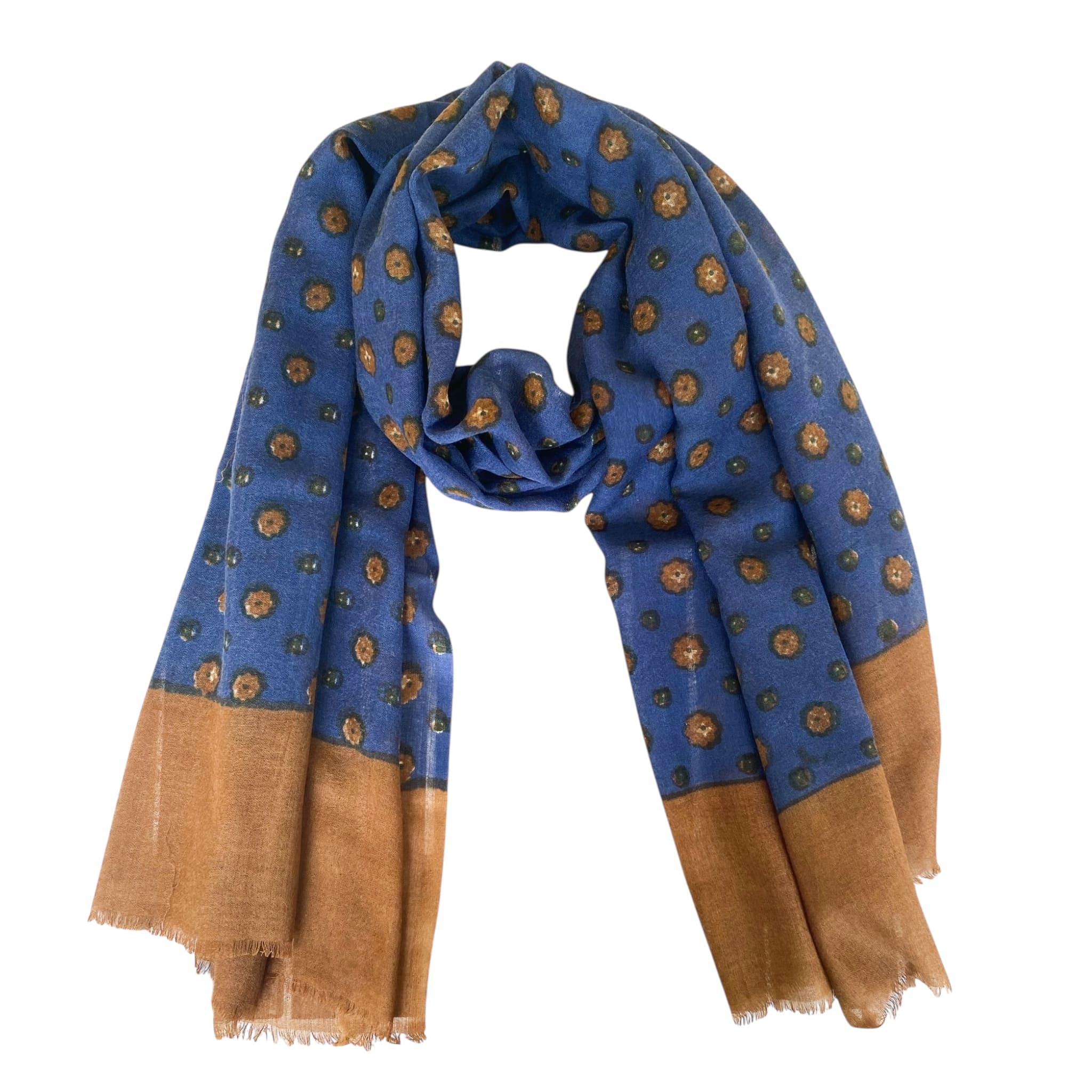 L'écharpe en mérinos Shantisar associe un look frais et moderne à un bleu profond et des touches de caramel chaudes. Fabriquée en laine mérinos douce, elle est agréable au toucher, tient chaud et est respirante, ce qui la rend parfaite pour un usage quotidien.