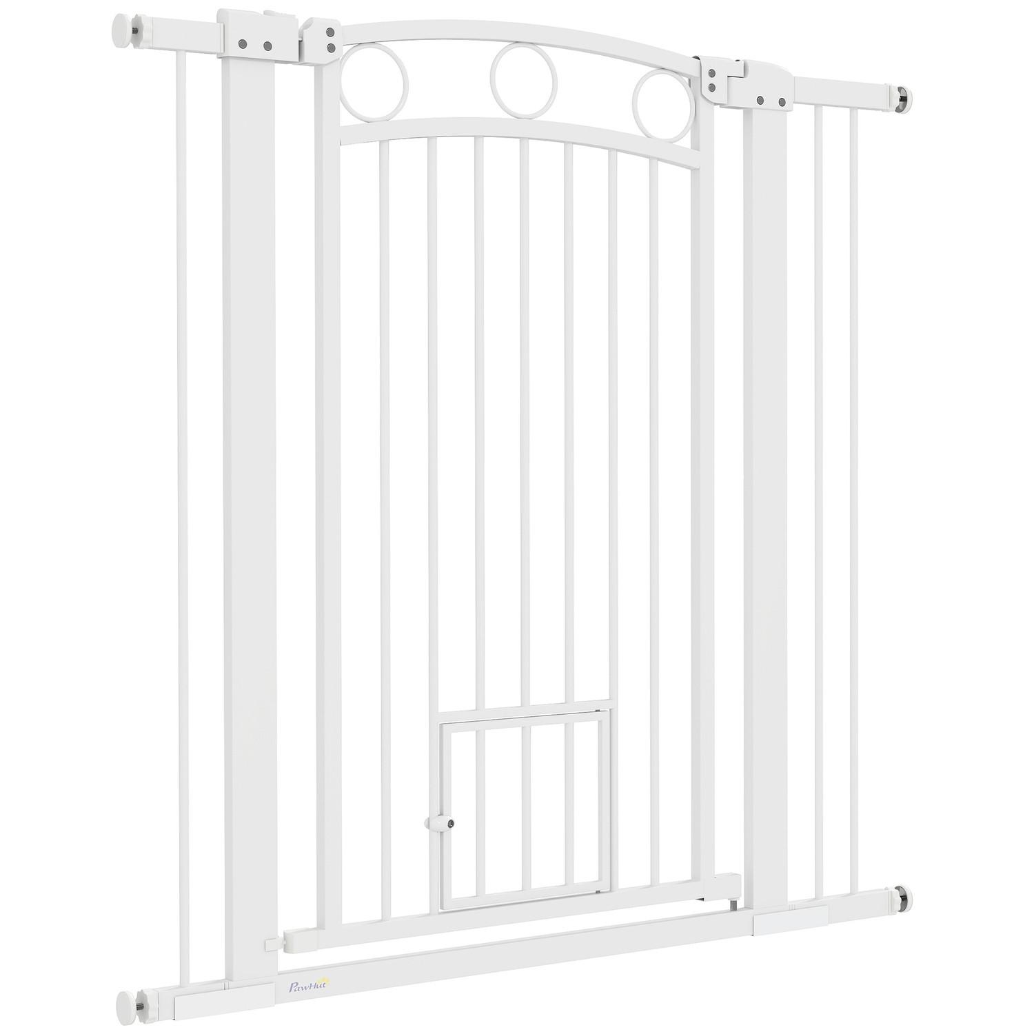 Northio Barrière de sécurité pour porte pour chien, barrière de 76 à 104 cm sans perçage, barrière d'escalier en acier, barrière d'escalier avec porte pour chat, barrière de protection, barrière de sécurité pour escaliers, porte, couloir, blanc