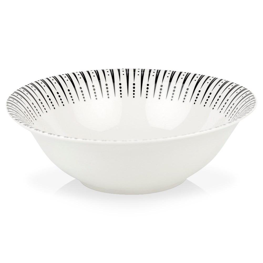 Ce grand bol a une capacité de 1,4 litres et est parfait pour tous vos besoins en cuisine. Fabriqué en porcelaine blanche de haute qualité, il est à la fois élégant et durable. Le bol est décoré d'un design noir élégant qui lui donne un look moderne et sophistiqué. De plus, il va au lave-vaisselle, ce qui rend le nettoyage facile et pratique.
