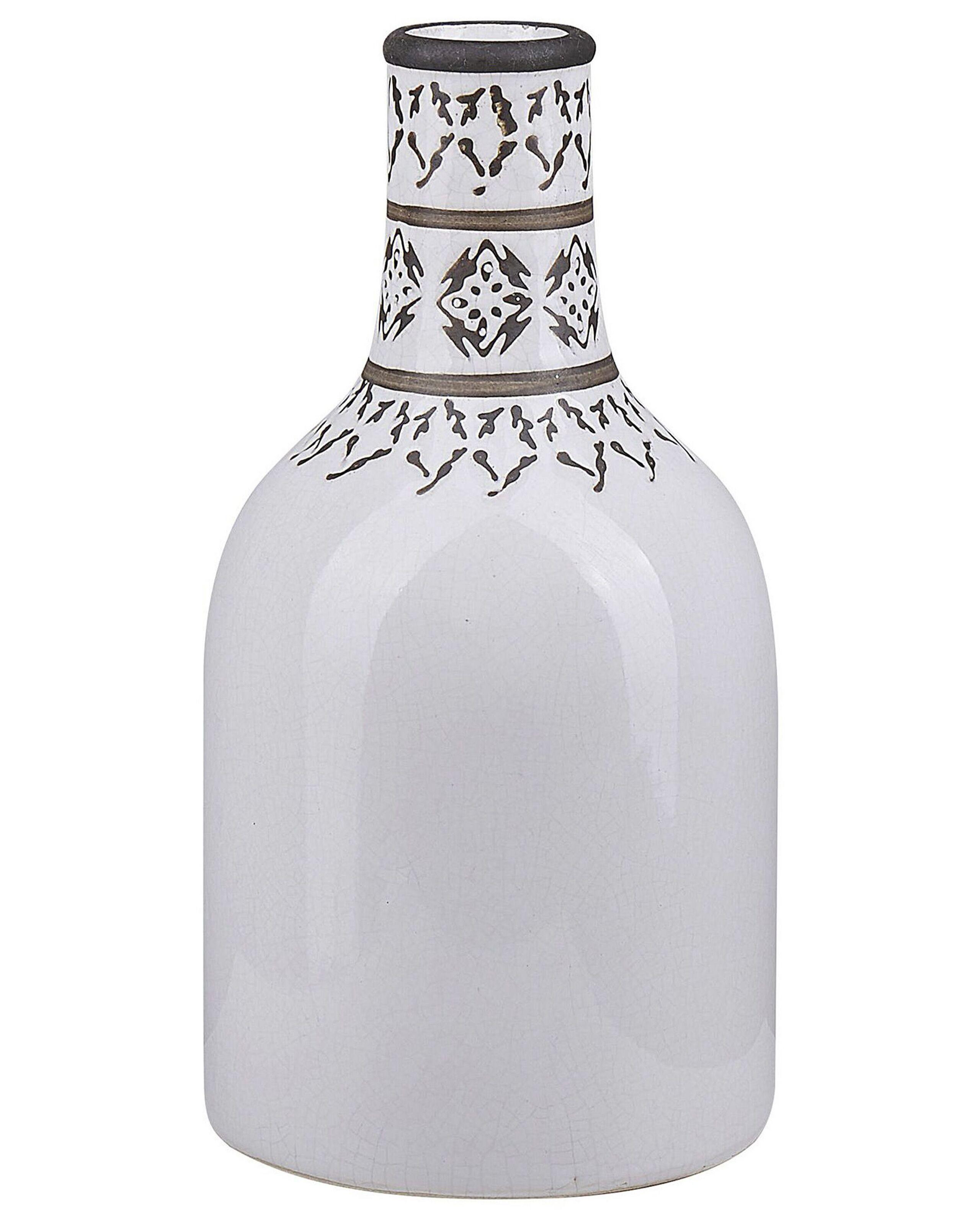 Vase à fleur en céramique blanc de style vintage. Ce vase en forme de carafe apportera une touche vintage à votre déco. Avec son motif spiral et sa peinture craquelée, il donnera du style à votre table ou étagère. Si vous aimez les fleurs fraîchement coupées, faites vous plaisir, ce vase est résistant à l'eau.