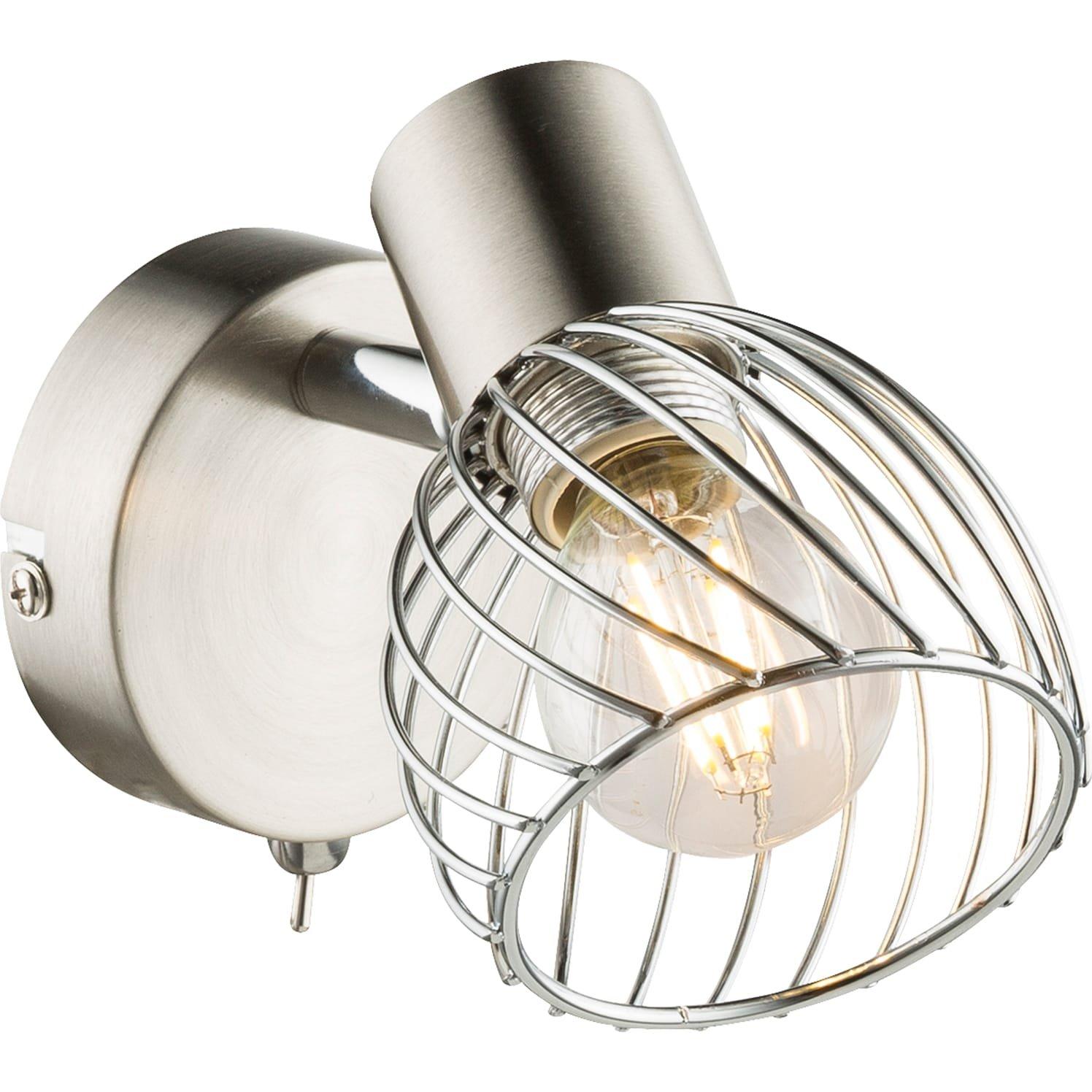 Spot nickel mat, chrome, écran cage métallique, interrupteur, LxH: 80x120, AL: 120, sauf 1xE14 40W 230V