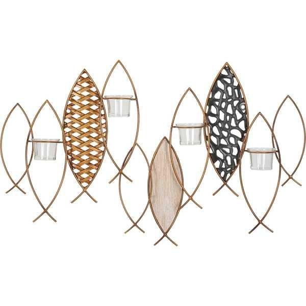 Bougeoir mural en métal avec des lignes rappelant des poissons colorés ornés. Peut contenir 4 bougies.