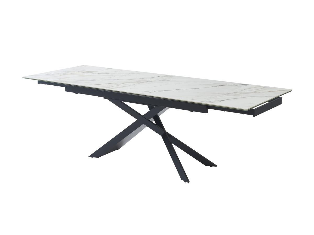Maison Céphy, Table à manger extensible 6 à 10 personnes en céramique, verre trempé et métal - Effet marbre blanc et Noir - LUMIEL de Maison Céphy