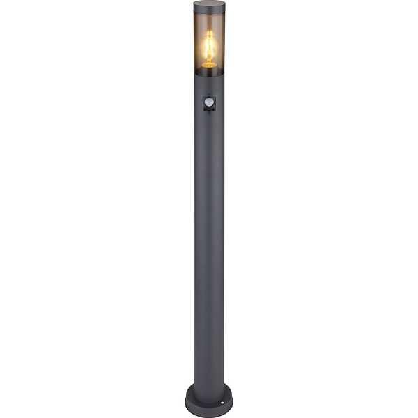 Lampe d'extérieur en acier inoxydable anthracite, plastique fumé, capteur inclus, IP44, : 127mm, H: 1100mm, sauf 1x E27 15W 230V.