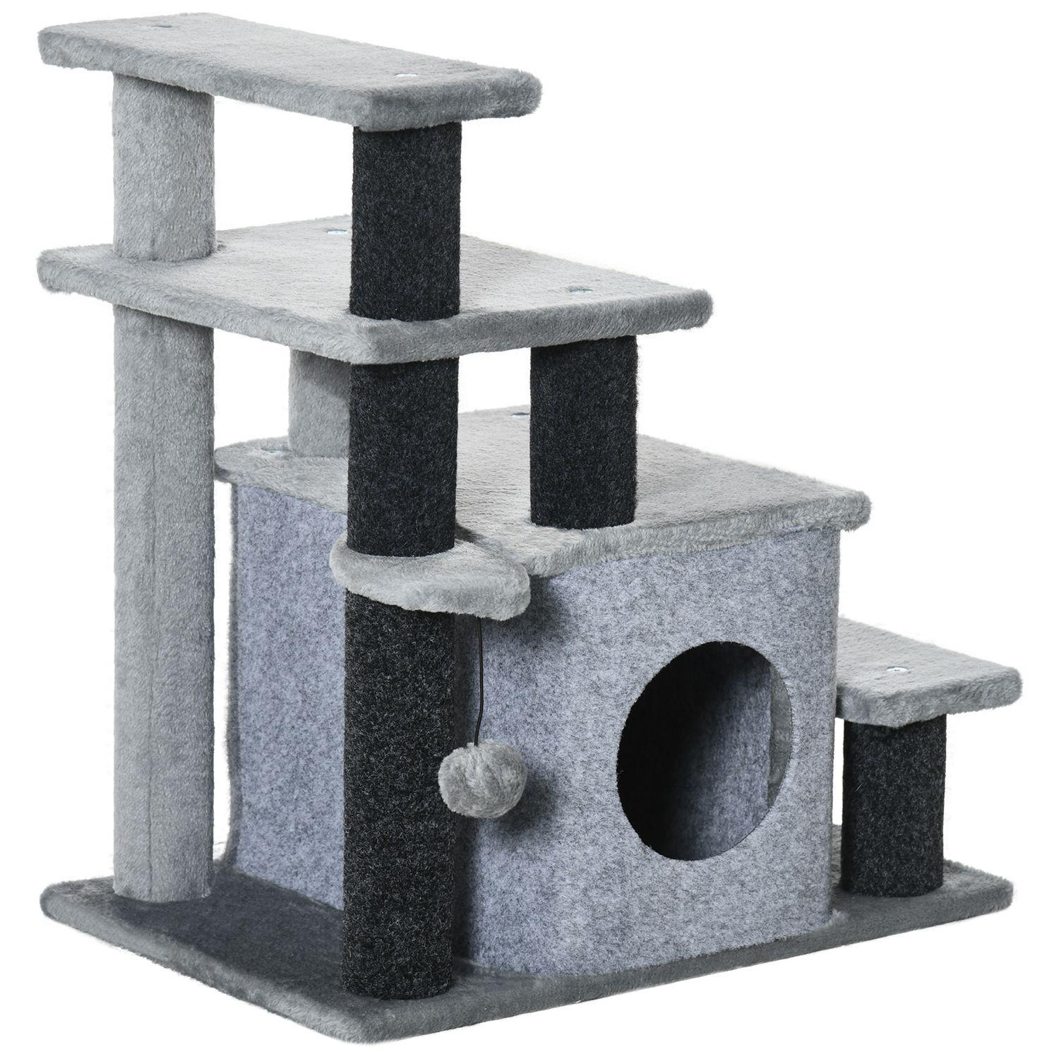 Northio Escalier Pour Animaux De Compagnie 3/4 Marches Pour Chat Avec Grotte De Couchage Et Balle De Jeu Suspendue En Peluche En Aggloméré