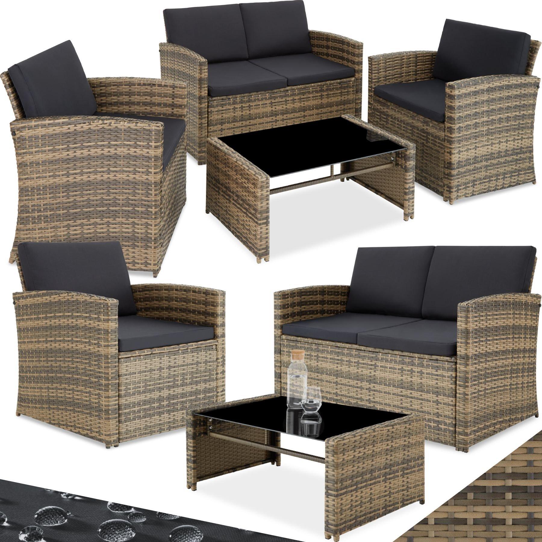Tectake Canapé de jardin lounge en rotin JESOLO pour 4 personnes