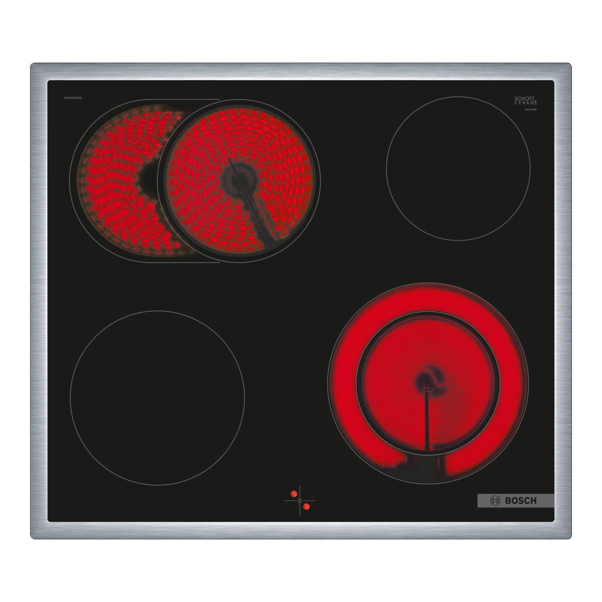 Plan de cuisson électrique Bosch NKN645GA2E : des solutions de cuisson efficaces Solutions de cuisson au design intelligentAvec la table de cuisson électrique NKN645GA2E de Bosch, vous découvrez vous offre une combinaison innovante d'efficacité et de confort d'utilisation.Panneau de commande dans la cuisinière:. La commande de la table de cuisson s'effectue simplement et directement via les éléments de commande de la cuisinière, ce qui rend l'utilisation particulièrement confortable.Des caractéristiques uniques :La zone de cuisson de 21cm:. Une zone de cuisson extensible qui s'adapte de manière flexible à vos besoins de cuisson. s'adapte à vos besoins.Cadre enveloppant : Le cadre plat en acier inoxydable permet une intégration parfaite dans votre plan de travail. votre plan de travail.Le plaisir de cuisiner pleinement :Espace pour 4 casseroles ou poêles: Grâce à la généreuse surface de 60 cm, vous pouvez sans problème utiliser plusieurs casseroles en même temps.Flexibilité des zones de cuisson : Une zone de rôtissage qui détecte et s'adapte automatiquement. Une zone de cuisson zone à deux cercles pour les ustensiles de cuisson les plus divers.Les zones de cuisson en détail :Avant gauche : 180 mm, 2 kWArrière gauche : 170 mm, 265 mm, 1.6 kWArrière droite : 145 mm, 1.2 kWArrière droite : 145 mm, 210 mm, 1 kWConfort d'utilisation et sécurité :Convivialité de la cuisinière : Contrôlez facilement la puissance de la table de cuisson à l'aide des manettes sur la cuisinière.Indicateur de chaleur résiduelle 4 fois : Vous indique quelles zones de cuisson sont encore chaudes, afin d'éviter tout contact involontaire. éviter de les toucher.Facile à installer:.Dimensions de l'appareil : (HxLxP) 43 x 583 x 513 mmTaille de niche requise: (HxLxP) [43 x 560 x (490 - 500)La table de cuisson électrique NKN645GA2E de Bosch allie une cuisson efficace et un design intelligent pour une expérience de cuisson convaincante. expérience culinaire.