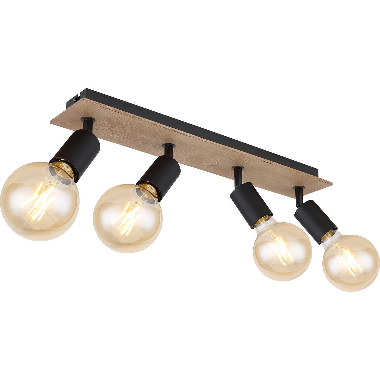 Spot en métal noir, bois marron, sans abat-jour, LxlxH : 490x90x110mm, exclu 4x E27 40W 230V.