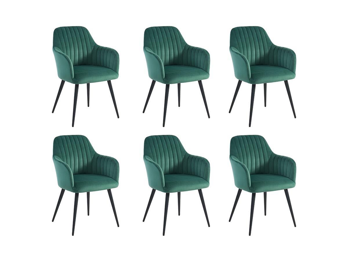 Vente-unique, Lot de 6 chaises avec accoudoirs en velours et métal noir - Vert - ELEANA