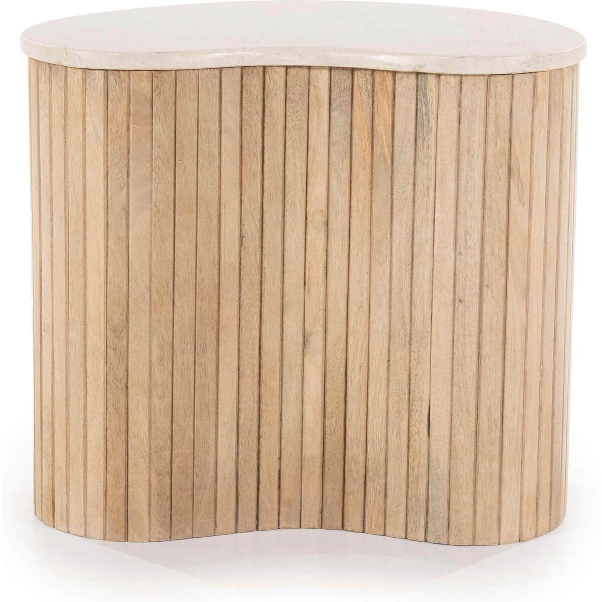La table d'appoint Kira de la série populaire est un meuble élégant qui séduit par sa combinaison harmonieuse de bois de manguier et de marbre. Le marbre, connu pour sa beauté naturelle et sa longévité, fait de chaque table une œuvre d'art unique avec des variations individuelles. Avec ses dimensions de 50 cm de large, 33 cm de profondeur et 44 cm de hauteur, la table s'intègre parfaitement dans les espaces de vie les plus divers et offre une surface de rangement élégante. La couleur blanc naturel confère à la table d'appoint une élégance intemporelle et fait en sorte qu'elle soit un point fort dans chaque pièce.