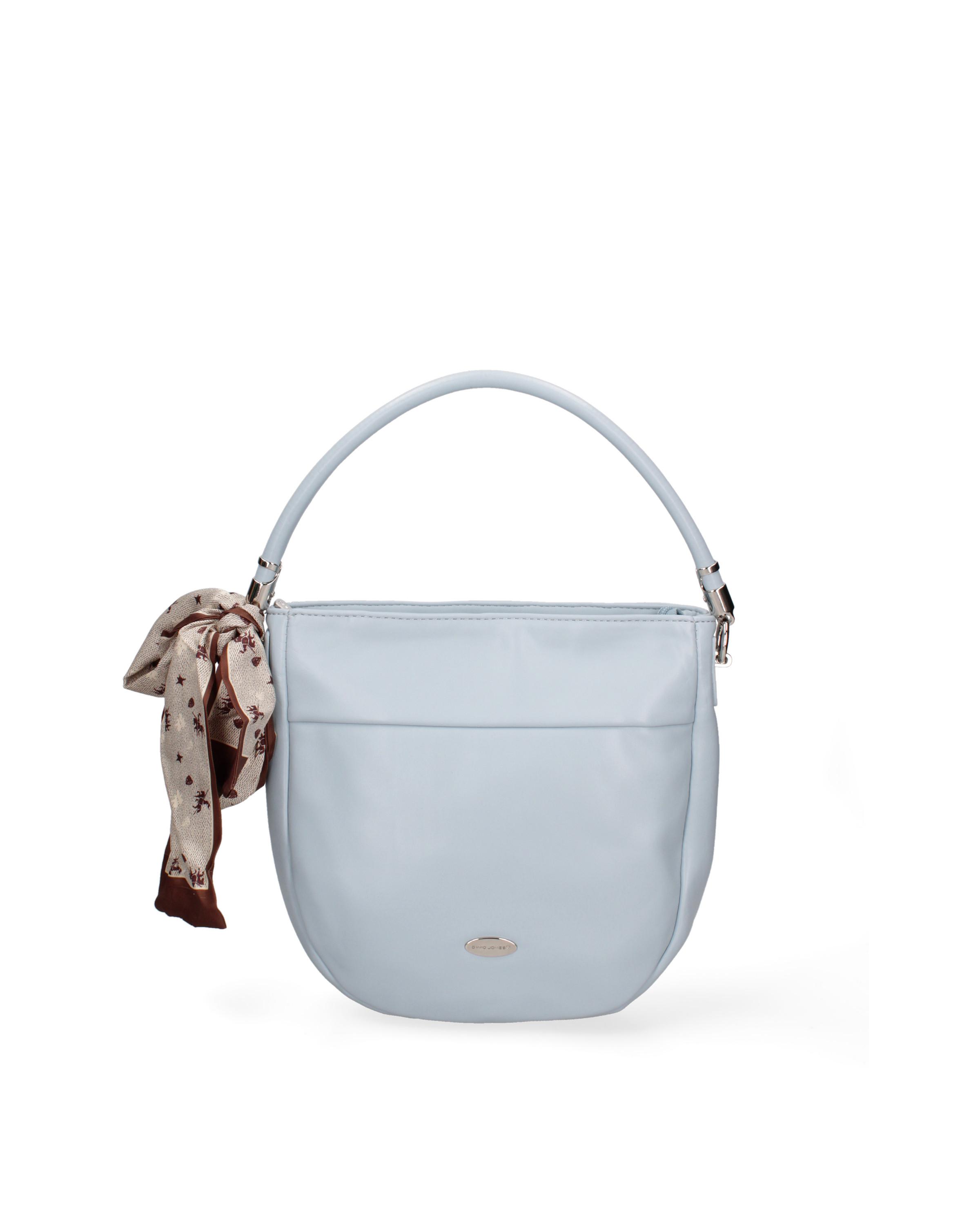 Ce sac à main élégant présente un design épuré, complété par un détail de foulard stylé noué à la poignée. Il offre un accessoire sophistiqué pour diverses occasions.
