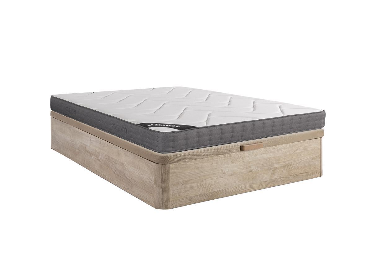 DREAMEA, Ensemble 160 x 200 cm sommier coffre naturel clair + matelas ressorts ensachés 5 zones accueil mémoire de forme ép.23cm - BABYLONE de YSMÉE