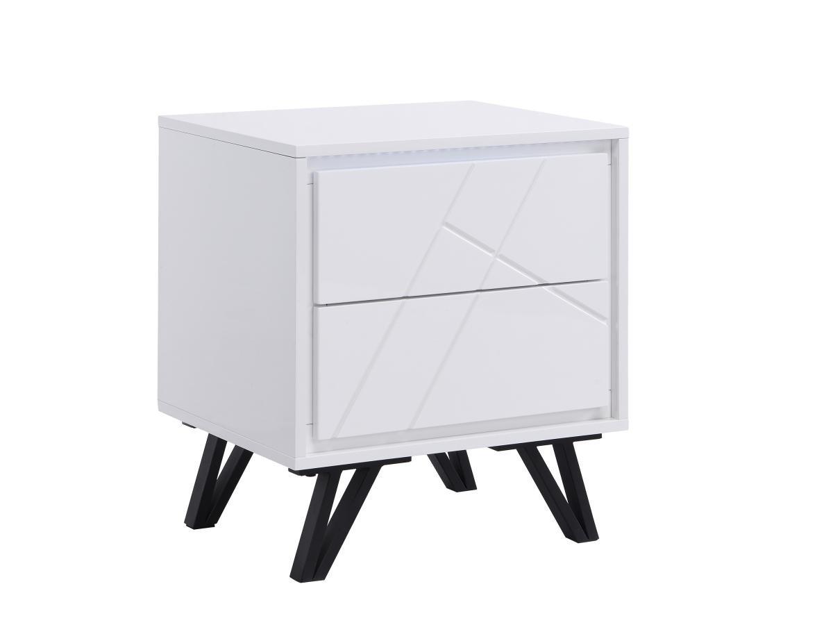 Vente-unique, Table de chevet 2 tiroirs - Avec LEDs - MDF - Blanc laqué - SALIANO