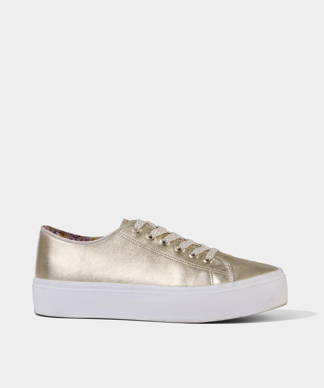 Ces baskets à plateforme sont dorées sur doré sur doré, apportant du glamour au quotidien. Le design présente une tige métallique chatoyante qui ajoute une touche de glamour à n'importe quelle tenue. La semelle plateforme surélevée offre une silhouette moderne et une hauteur confortable.