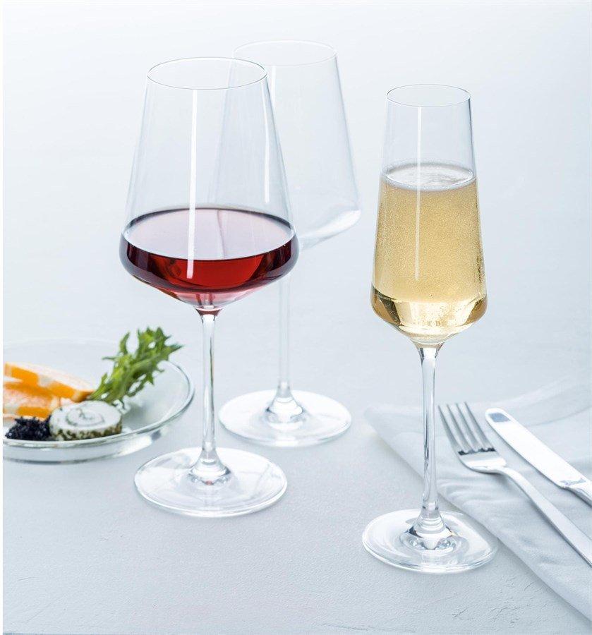 Set avec verres à vin rouge, à vin blanc et à champagne