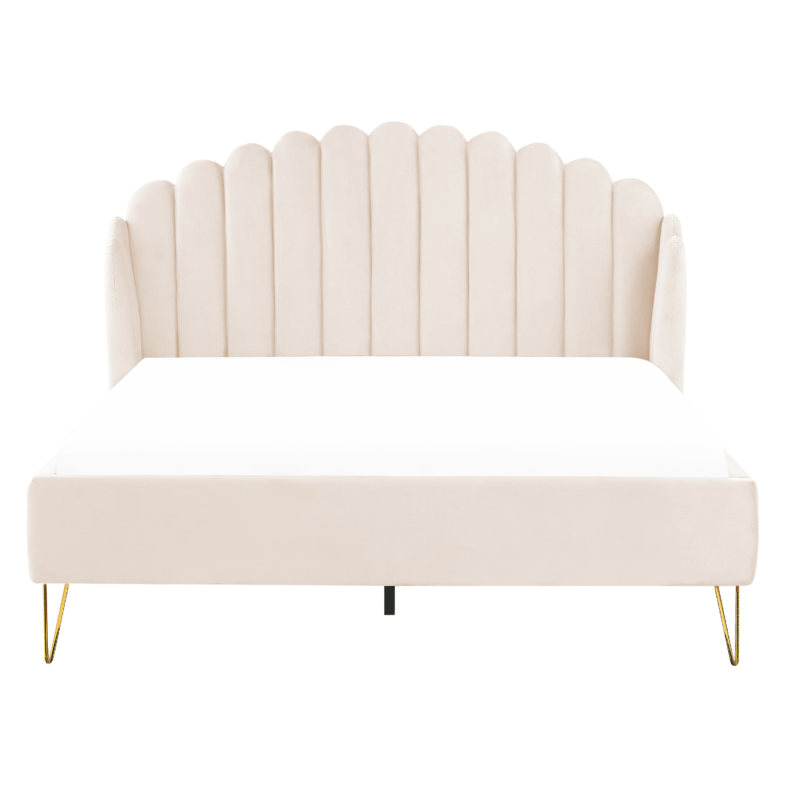 Lit deux places rétro. Les chambres à coucher à thème rétro sont très en vogue. Ce lit, fabriqué en velours de haute qualité, ajoutera non seulement une touche rétro à votre chambre, mais vous garantira également un sommeil réparateur. Le lit attire l'attention grâce à sa couleur beige et à sa tête de lit rembourrée.