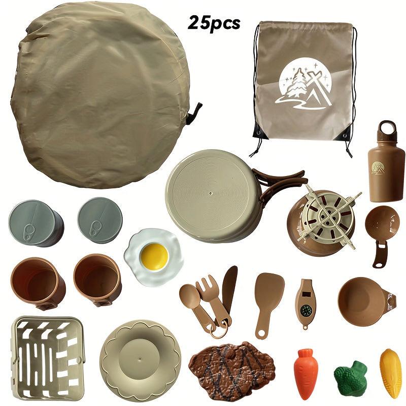 Activity-board, Ensemble de jouets de camping avec tente de jeu Jouets de feu de camp, ensemble de jouets de barbecue, ensemble de jouets de cuisine à découper, ensemble de jouets d'intérieur et d'extérieur.