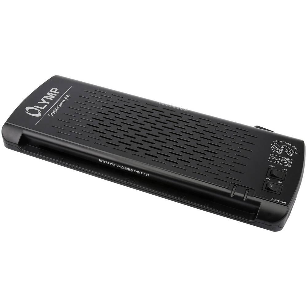 Plastification à chaud et à froid. formats jusqu'à DIN A4, largeur de plastification : 235 mm. design compact, design moderne, super plat, seulement 37 mm bouton. de déverrouillage de la barre de coupe haut. système de chauffage de haute qualité empêchant la formation de bulles. arrêt automatique en cas de surchauffe. films plastifiés : 3x DIN A5, 3x DIN A6. temps de chauffe : env. 3-5 min.. EPAISSEUR de film : max. 80 - 125 micron. vitesse de plastification :. 380 mm/minute : LED pour Power et Ready. .