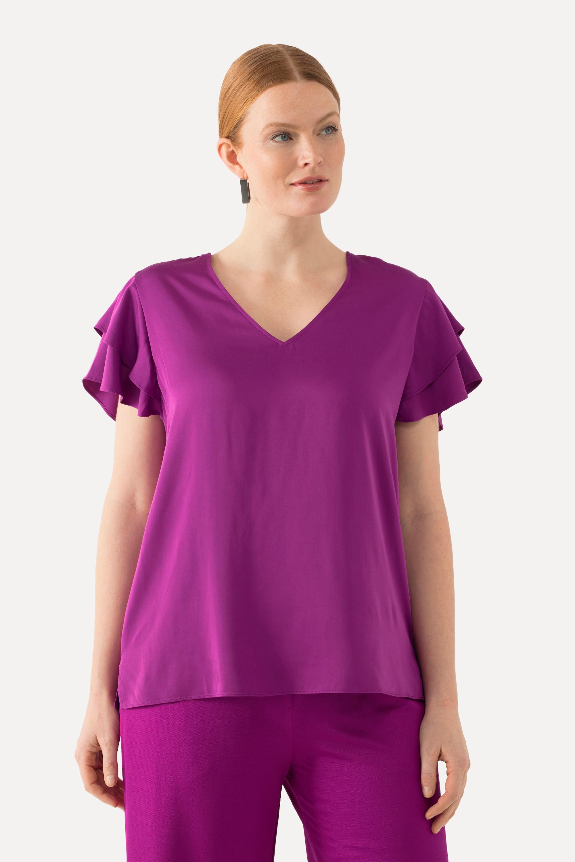 Ulla Popken Blouse décolleté en V manches courtes et évasées double volant