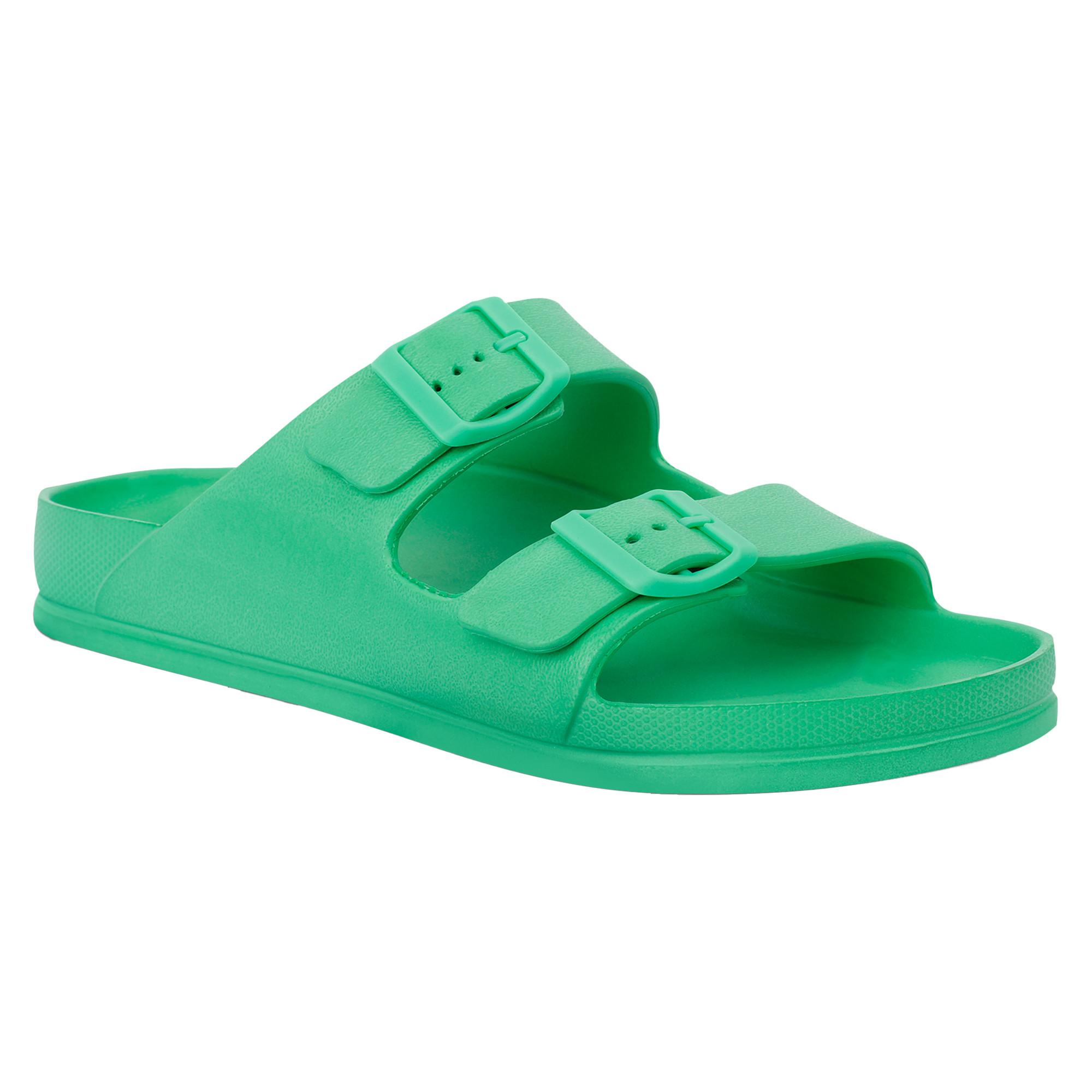Design/motif: Uni. Style du bout: Ouvert. Talon: Plat. Fermeture: Boucle ajustable, À enfiler. Caractéristiques: Double sangle, Léger. Dessus: Mousse EVA. Semelle intérieure: EVA, Moulée, Adaptée à l´eau. Semelle extérieure: EVA, Souple.