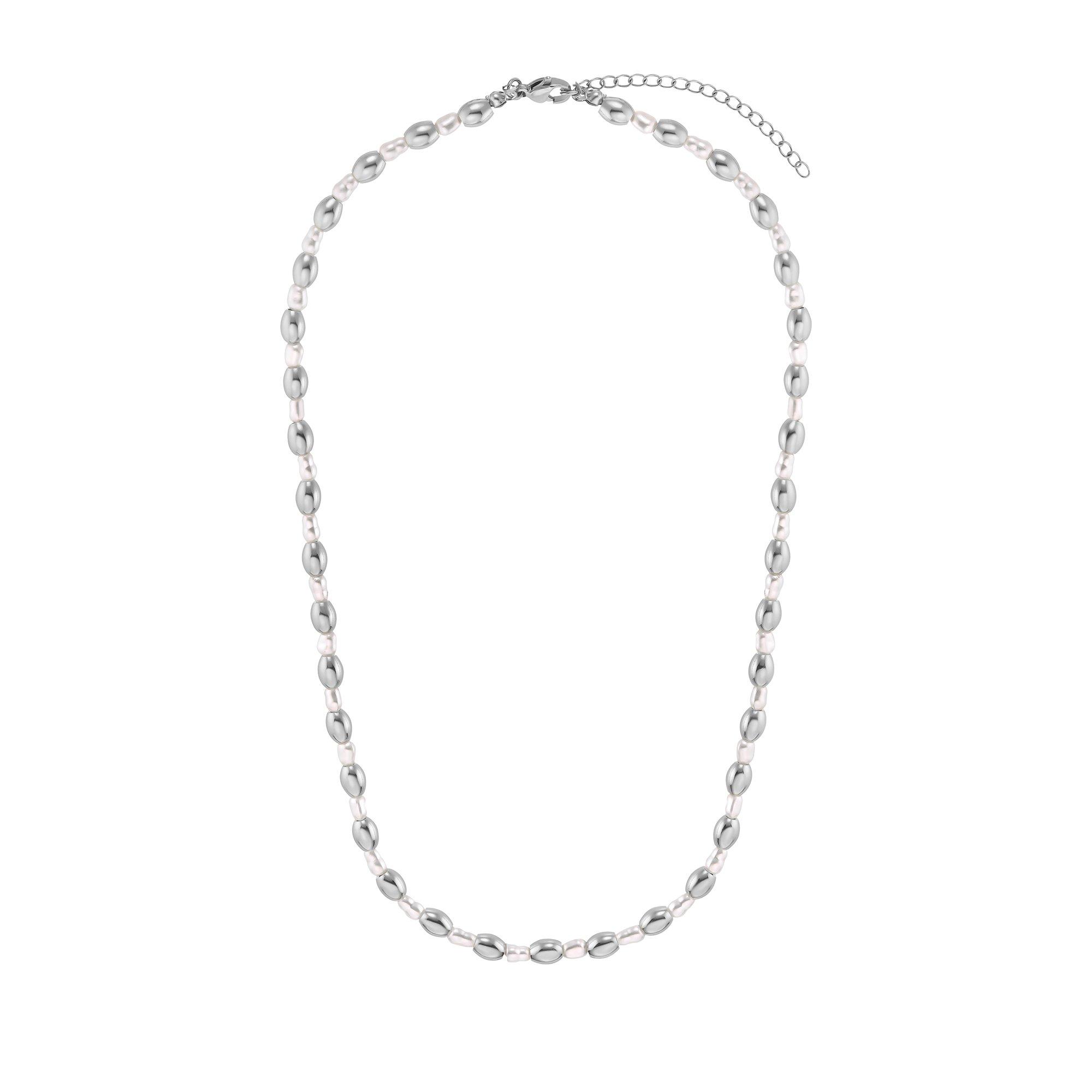 Peut-on faire mieux qu'un collier de perles ? Nous le pouvons ! Entre les élégantes perles ovales, de fines billes brillent et confèrent au collier une touche particulière de légèreté et d'élégance féminine. Le collier de perles convient aux tenues de fête et aux vêtements d'affaires élégants. Il rehausse les looks décontractés et deviendra ta pièce préférée en été !