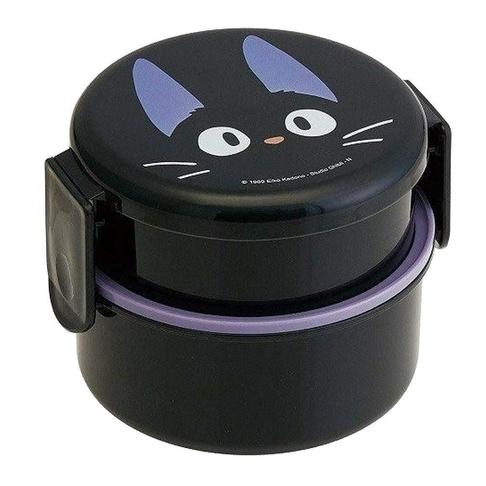 Belle boîte à lunch de taille parfaite pour le déjeuner. Le couvercle de la boîte à lunch a un motif du chat Jiji du film Kiki's Delivery Service du Studio Ghibli. La boîte à lunch se compose de deux récipients ronds empilés l'un sur l'autre et se ferme avec un fermoir à pression. Il est donc parfait pour séparer les différentes parties de votre déjeuner.