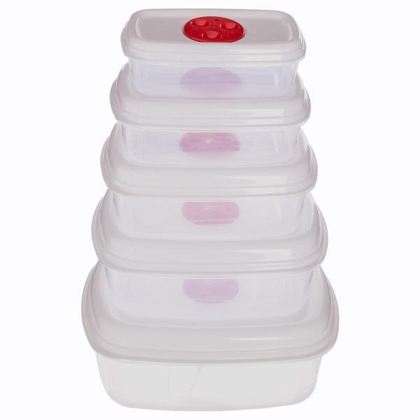 Cet ensemble comprend cinq boîtes à lunch de différentes tailles. Comme les boîtes à lunch vont au micro-ondes, vous gagnez du temps et de l'espace en les utilisant pour stocker les restes du dîner d'aujourd'hui au déjeuner de demain. De plus, vous réduisez le risque de jeter de la nourriture inutilement. Parce qu'ils peuvent être empilés les uns sur les autres, il est facile de les garder en ordre lorsqu'ils ne sont pas utilisés.