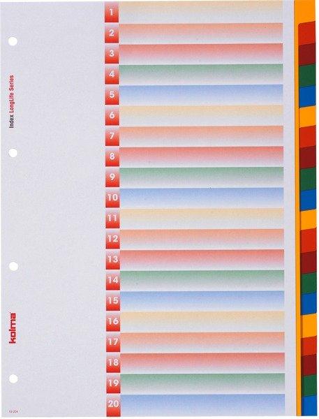 Kolma, KOLMA Register LongLife A4 19.204.20 blanko, 20 frab. Tabs, 4 Loch