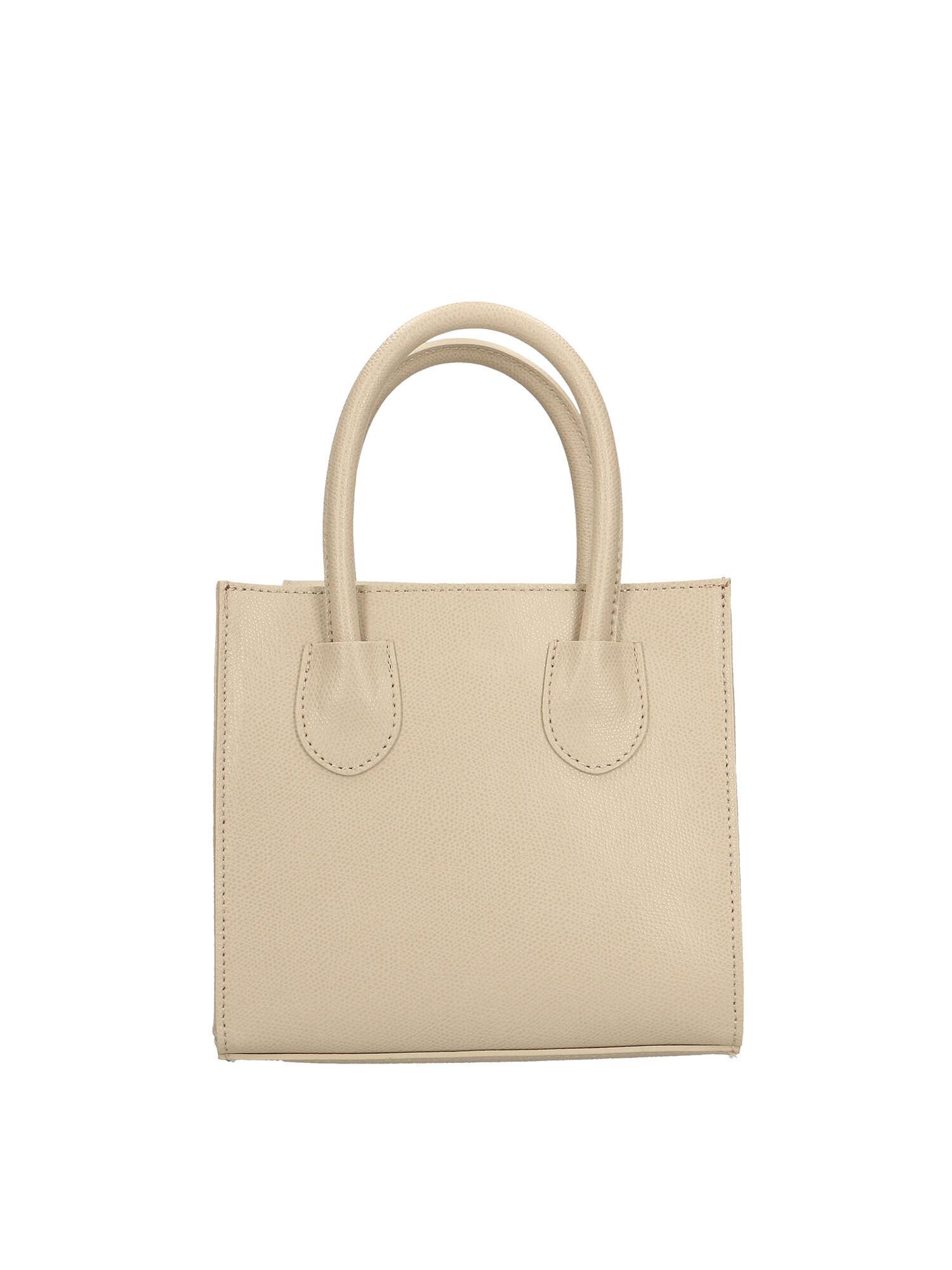 Sac à main pour femme. La fermeture se fait avec un bouton magnétique. Les poches intérieures sont une ouverte. Les poches extérieures sont absentes. La bandoulière est réglable et amovible en cuir. La poignée est en cuir. Il y a un compartiment interne. Le matériau extérieur est du cuir véritable dollar. À lintérieur, il est doublé en tissu 70 % coton - 30 % polyester. Dimensions : 19x20x10 cm. Fabriqué en Italie