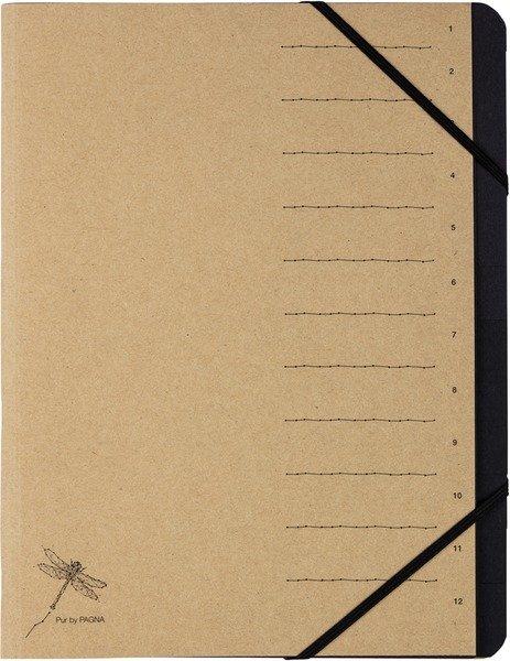 PUR by Pagna - Ordnungsmappen Ordnungsmappe, für Dokumente im Format A4, natur, aus 100% Recyclingkarton, mit schwarzem Eckspanngummi, 2 Schaulöchern im Buchblock, schwarzem Griffregister aus stabilem Karton für schnellen Zugriff auf Unterlagen, Aufdruck und Libelle auf dem Deckel, individuell beschriftbar 100% Recyclingkarton schwarzer Eckspanngummi 2 Schaulöcher 12 Fächer Aufdruck 1-12 und Libelle auf dem Deckel individuell beschriftbar