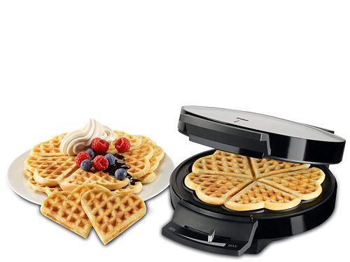 Puissance : 1000 W, nombre par passage : 5, motif : cœurPlaque de chauffage antiadhésive pour un nettoyage facileJusquà cinq gaufres en forme de cœurRégulation de température continueForme pratique et facile à ranger
