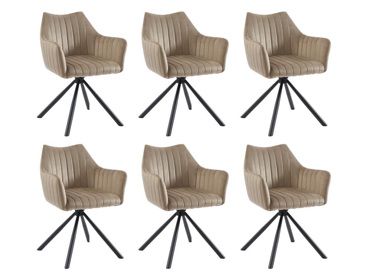 Vente-unique, Lot de 6 chaises avec accoudoirs en velours et métal - Beige - IZIALI de Pascal MORABITO