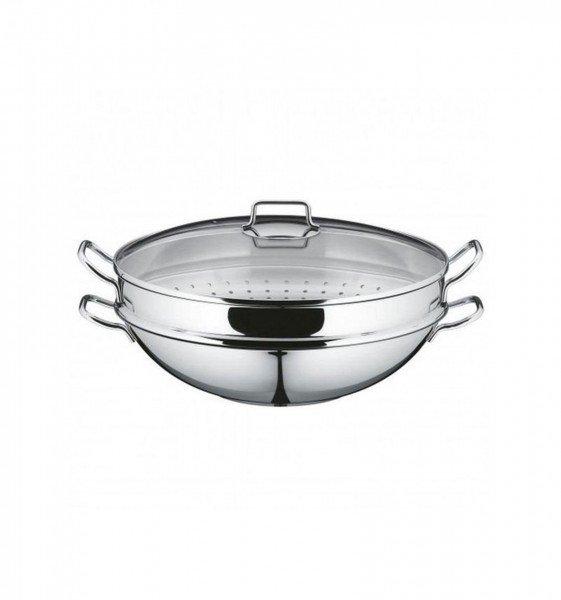 • Wok d'un diamètre de 36 cm • Fabriqué en Cromargan, argent • Plaques de cuisson compatibles : Électrique/gaz/vitrocéramique/induction • Large bord verseur pour verser sans goutter • Manipulation sûre grâce à la poignée ergonomique en acier inoxydable • Convient au lave-vaisselle