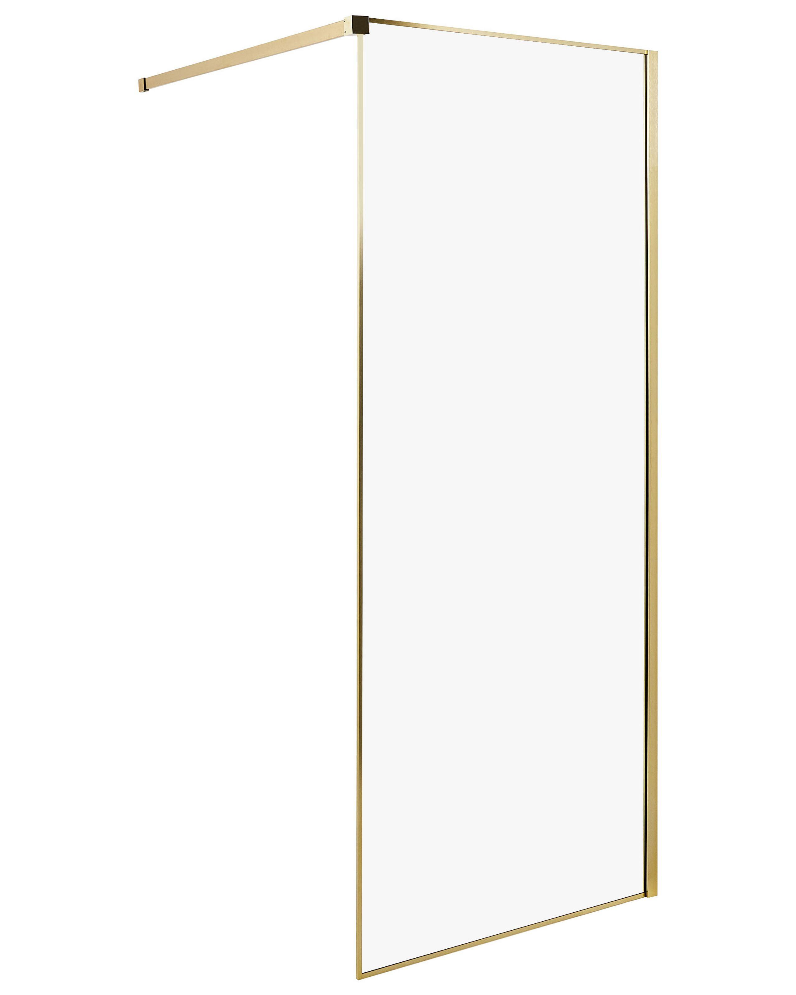 Cloison de douche minimaliste pour salle de bain. Ajoutez une touche de modernité à votre salle de bains avec cette paroi de douche élégante et minimaliste. Son cadre doré est fait d'acier inoxydable et d'aluminium, ce qui la rend très durable. La paroi simple est en verre trempé, ce qui garantit une protection adéquate de votre espace, tout en étant facile à entretenir. Grâce à son design, cet écran d'eau peut être associé à une variété de pièces de décoration et de meubles.
