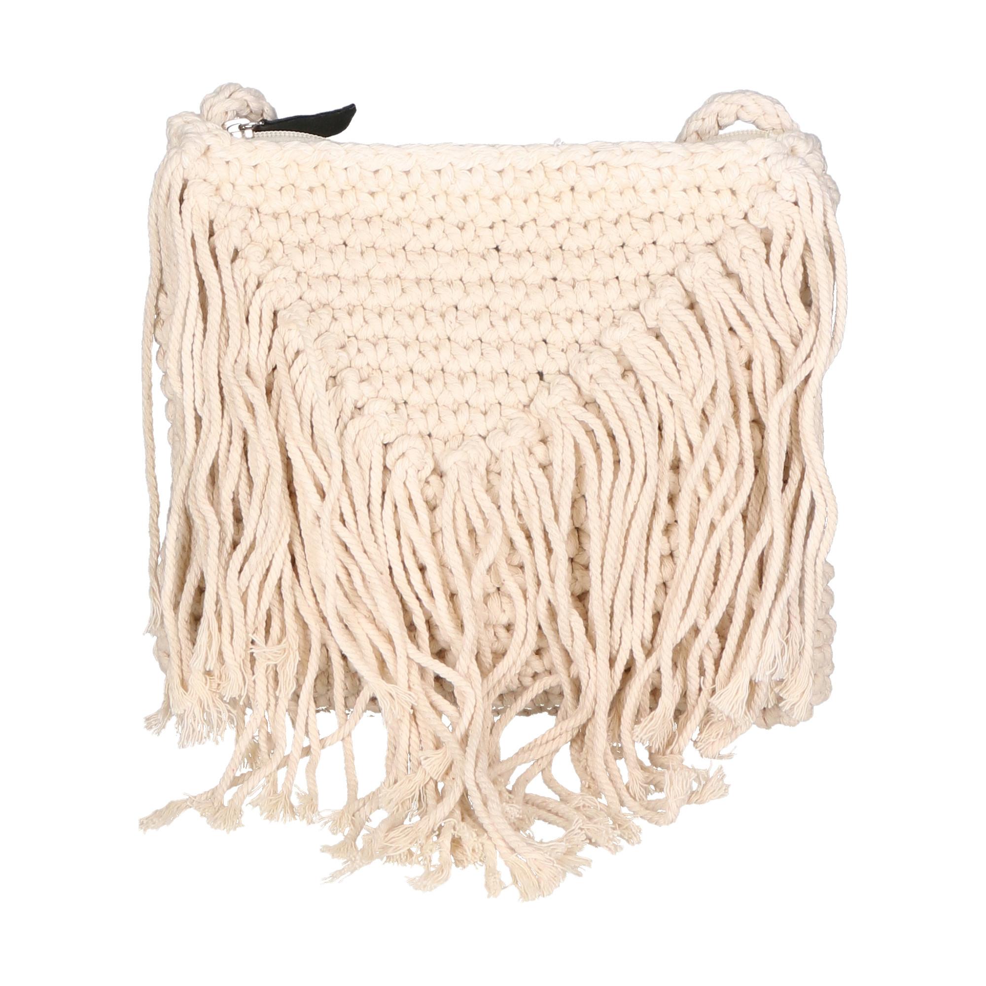Ce sac bandoulière est confectionné en coton tissé à la main et orné de franges ludiques, ce qui en fait un produit 100 % naturel et écologique. Chaque article est assemblé à la main de manière unique à partir de matériaux naturels, garantissant qu'il n'y a pas deux sacs identiques.