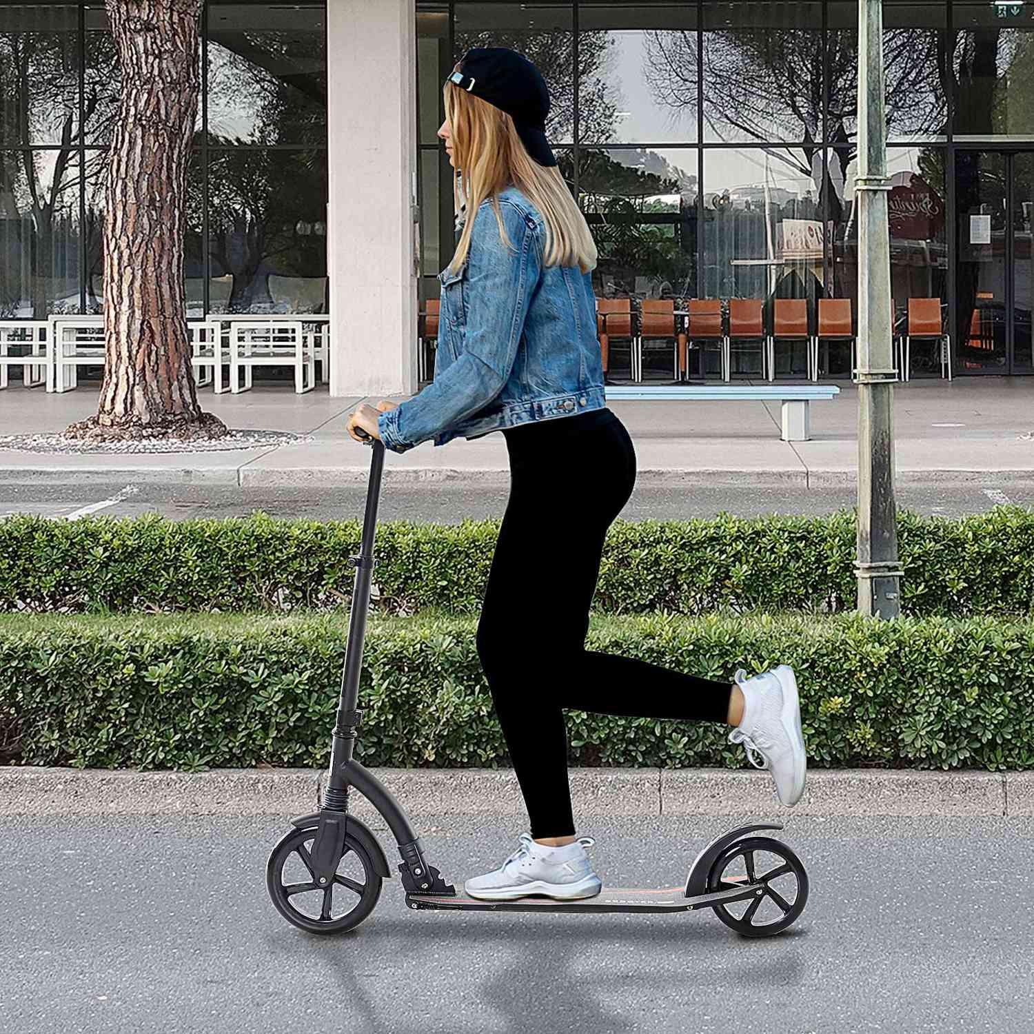 Avec cette trottinette pliante moderne et sécuritaire de chez, votre enfant va conquérir les trottoirs en un rien de temps ! Equipé d'un cadre en aluminium robuste, le scooter peut facilement transporter jusqu'à 100 kg de poids. La hauteur du guidon peut être réglée pour que cette trottinette puisse être utilisée confortablement aussi bien par les adolescents que par les adultes. Le système de freinage fiable des roues arrière et les pneus antidérapants garantissent une conduite sûre et fluide à tout moment.