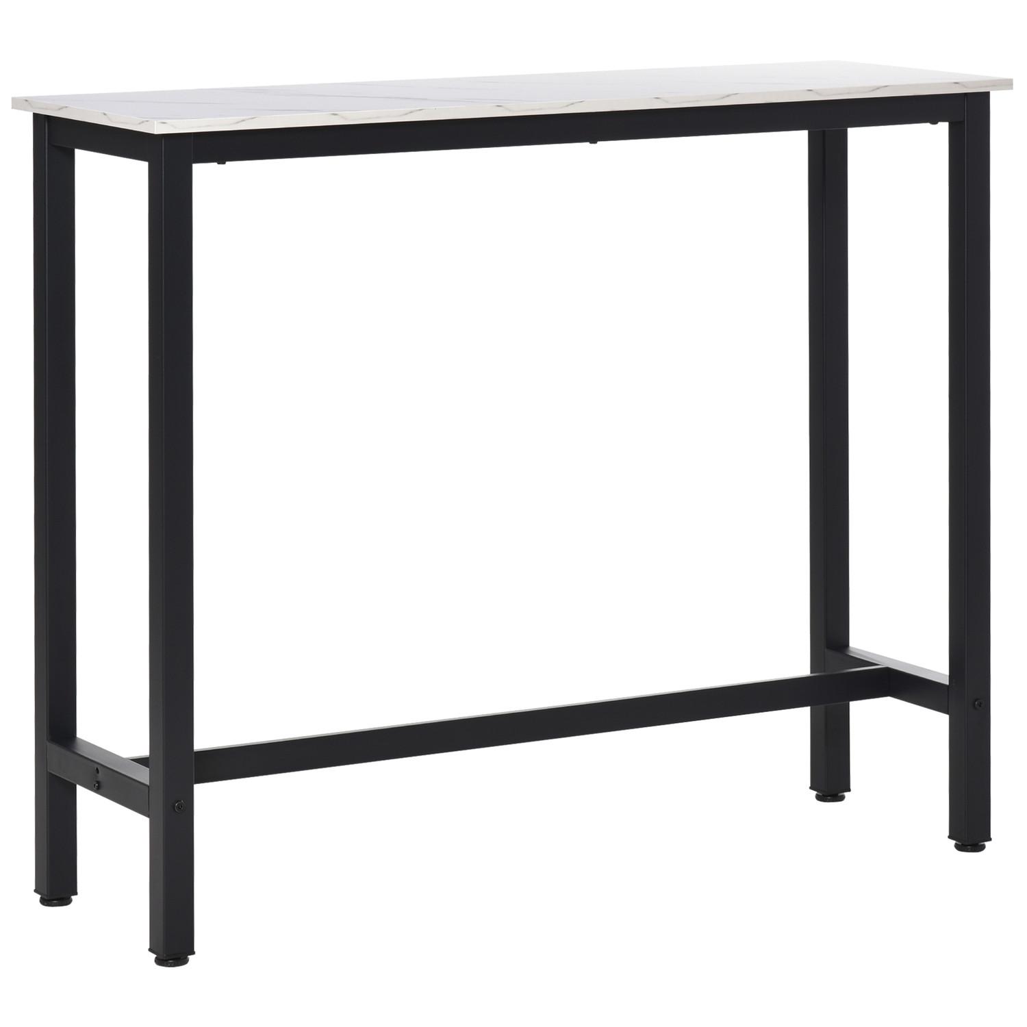 Northio Table de bar, table de bar aspect marbre, table de cuisine avec pieds réglables pour salon, salle à manger, acier 120 x 40 x 100 cm blanc + noir